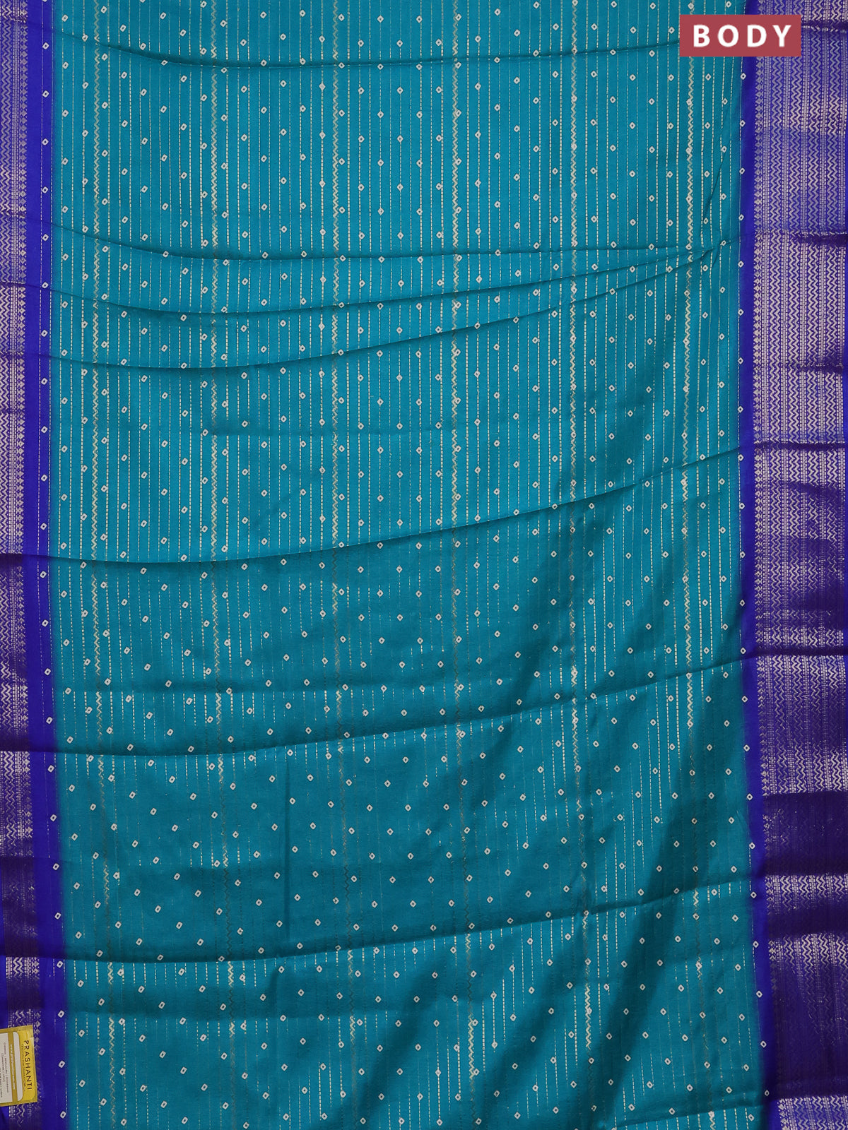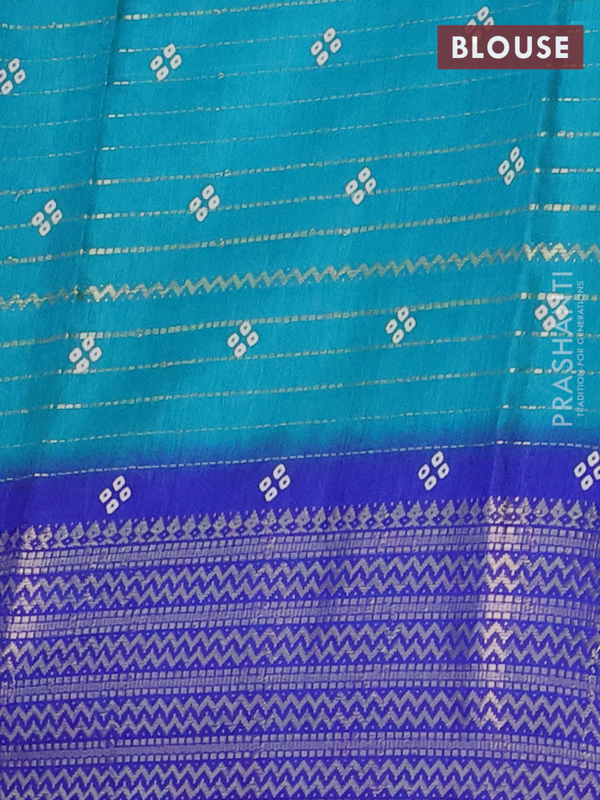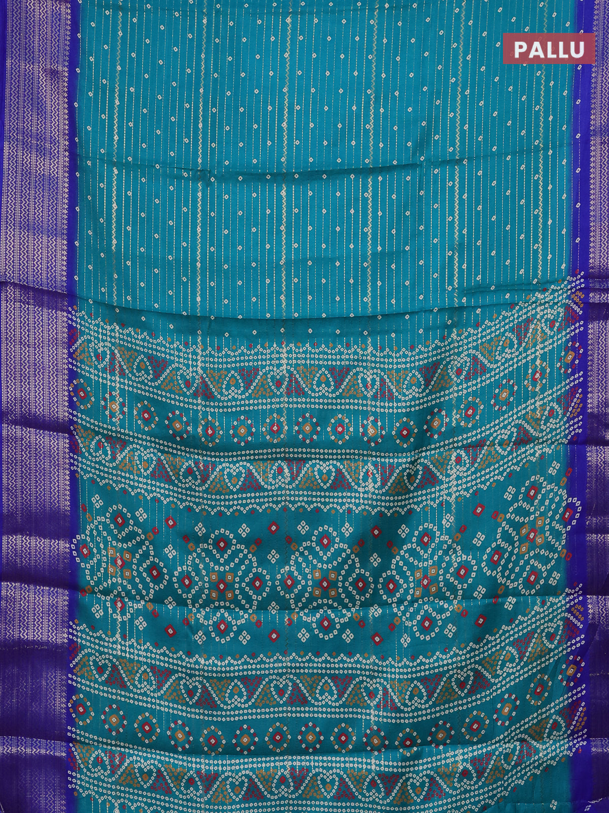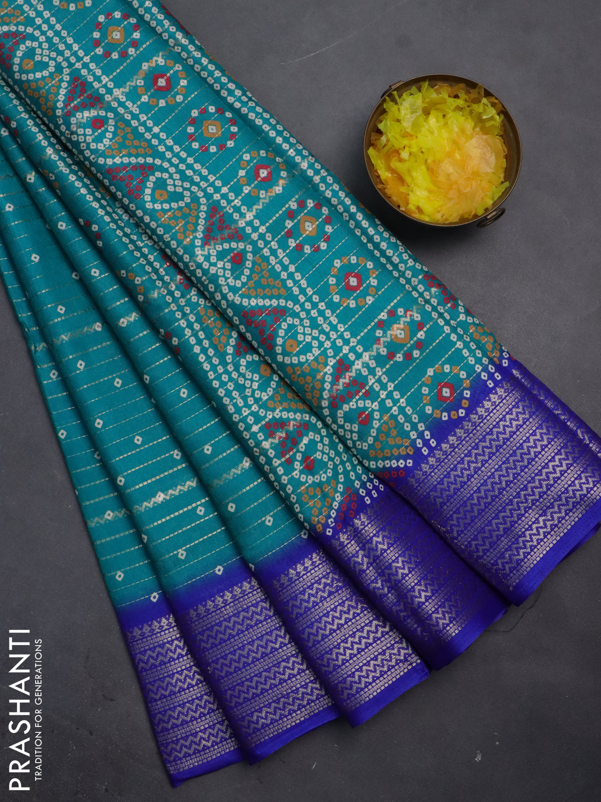 Semi dola saree teal green shade and blue with allover zari weaves & bandhani prints and zari woven border