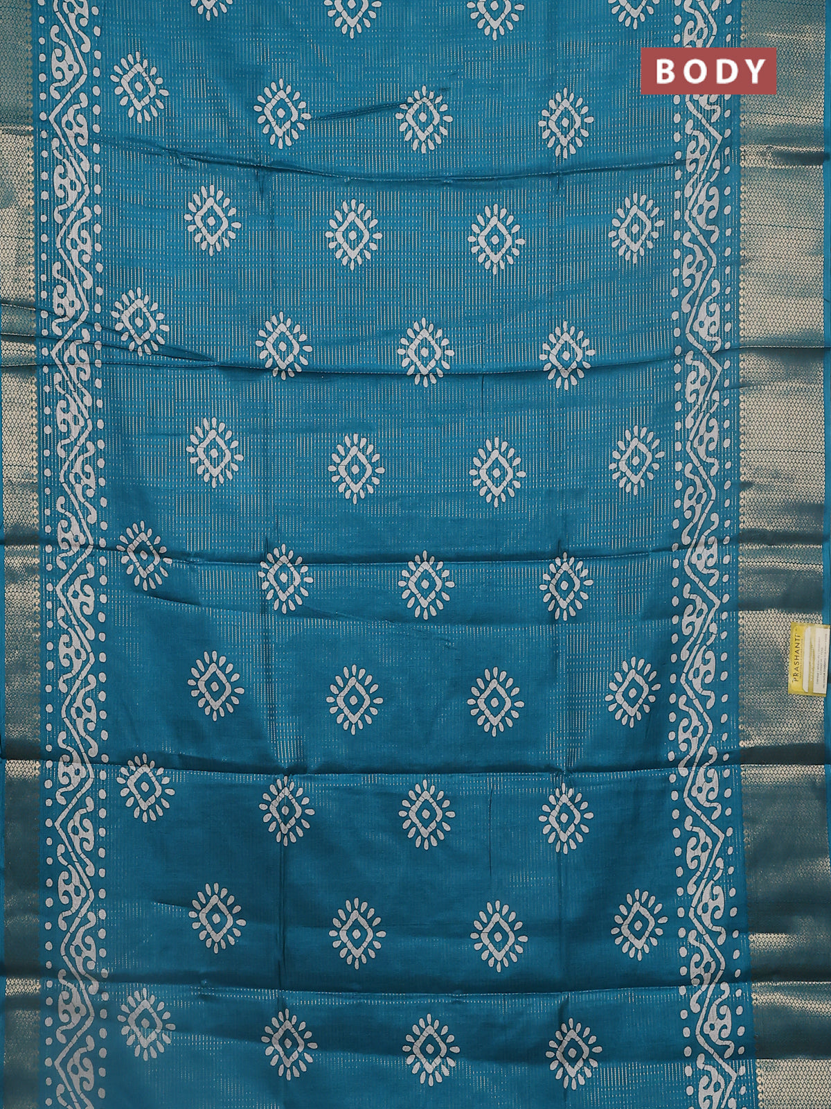 Semi dola saree teal green shade with allover zari weaves & batik butta prints and zari woven border