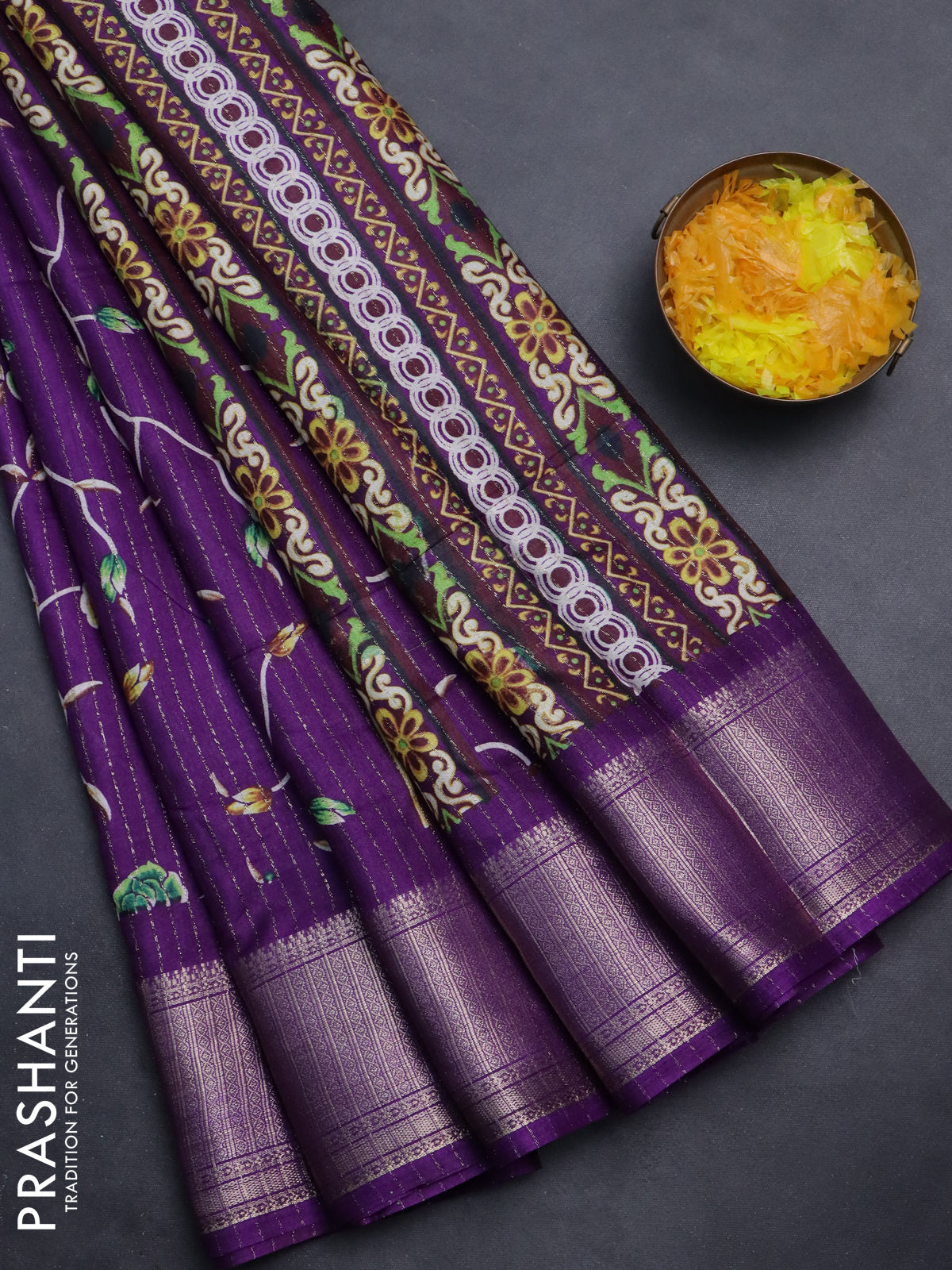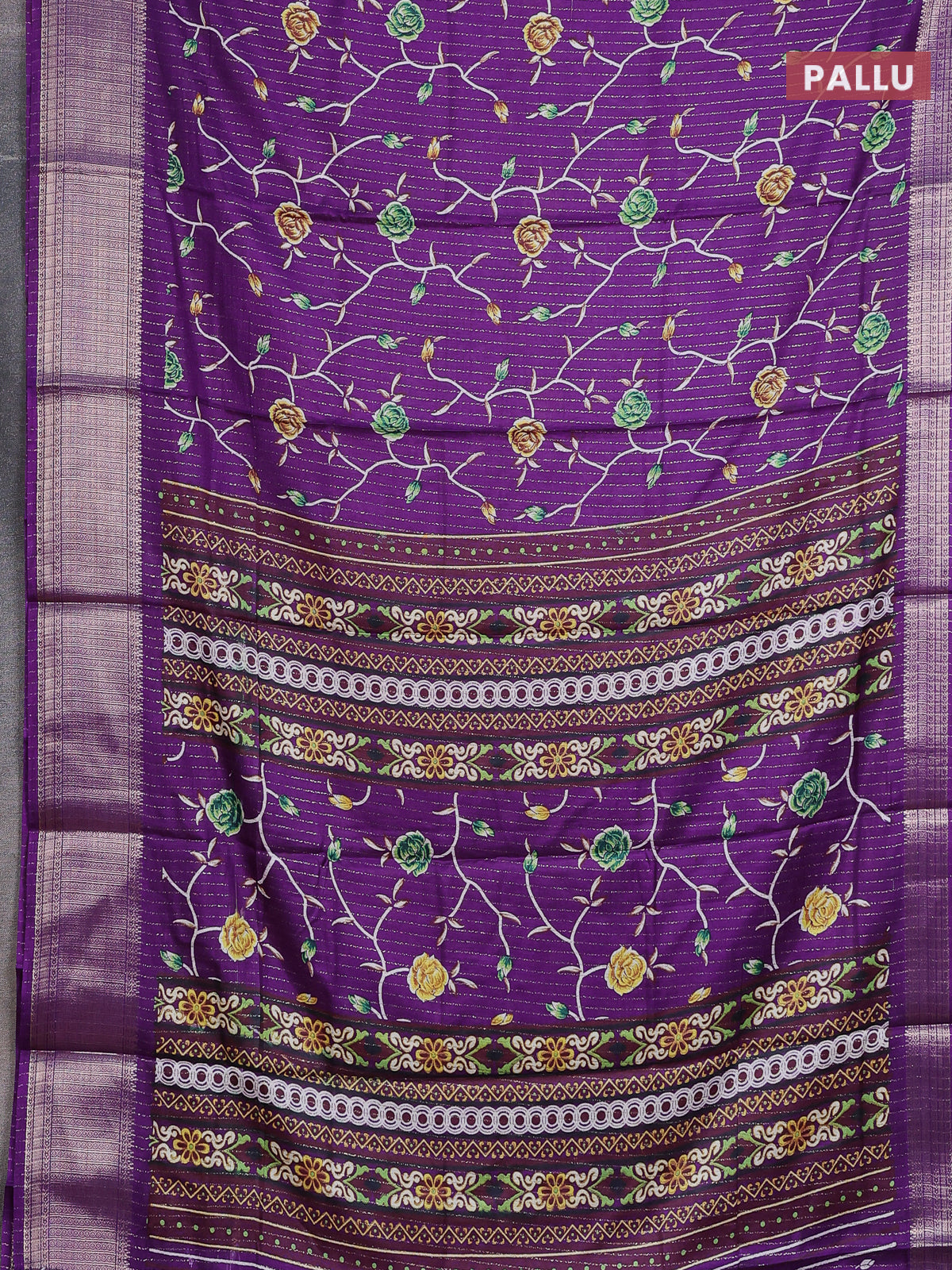 Semi dola saree violet with allover prints & zari weaves and zari woven border