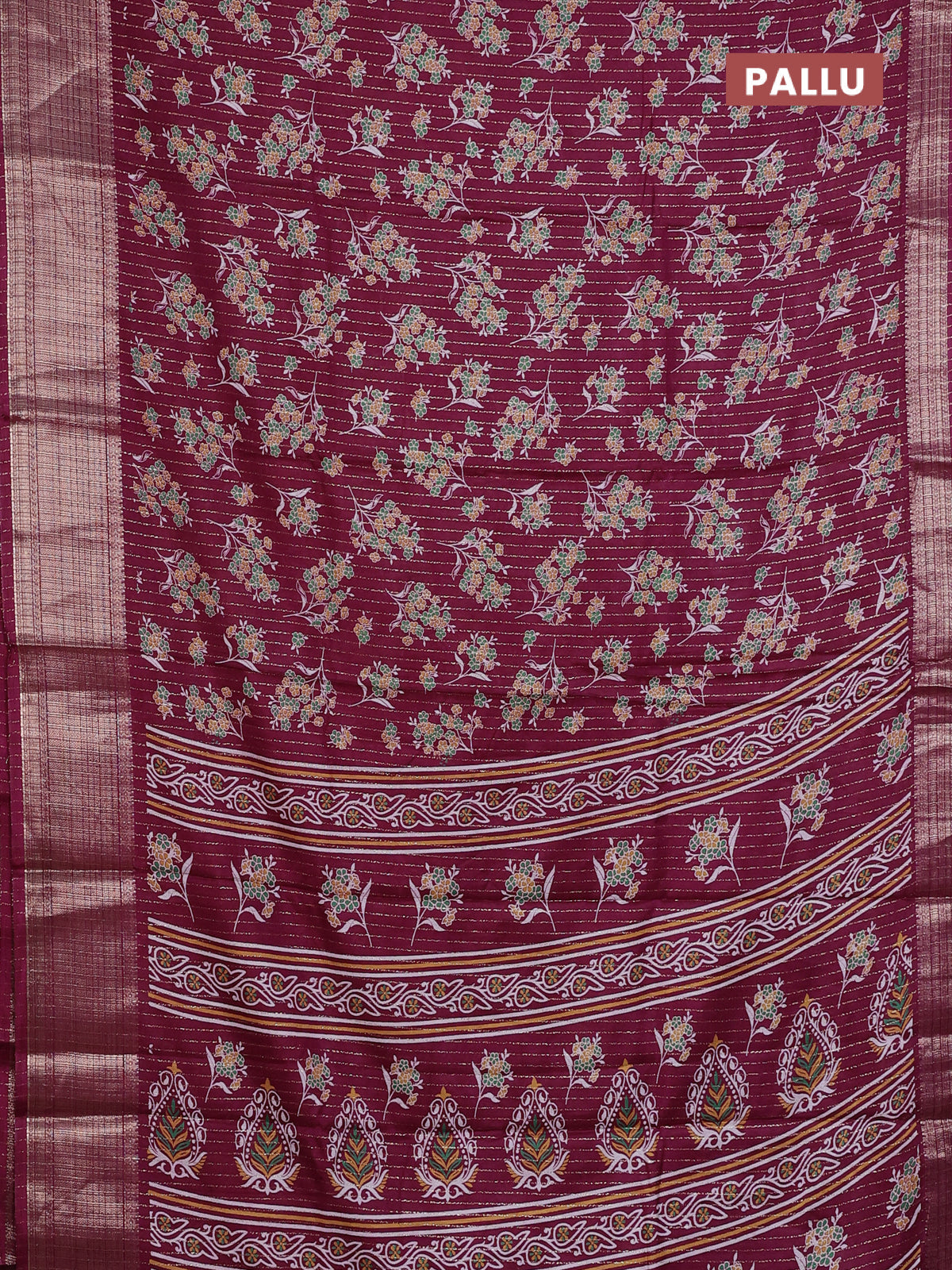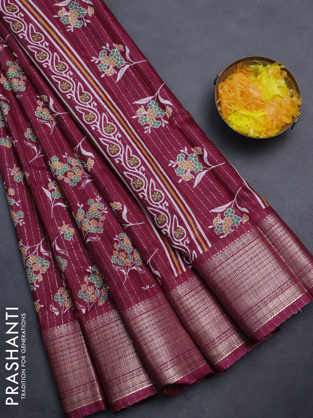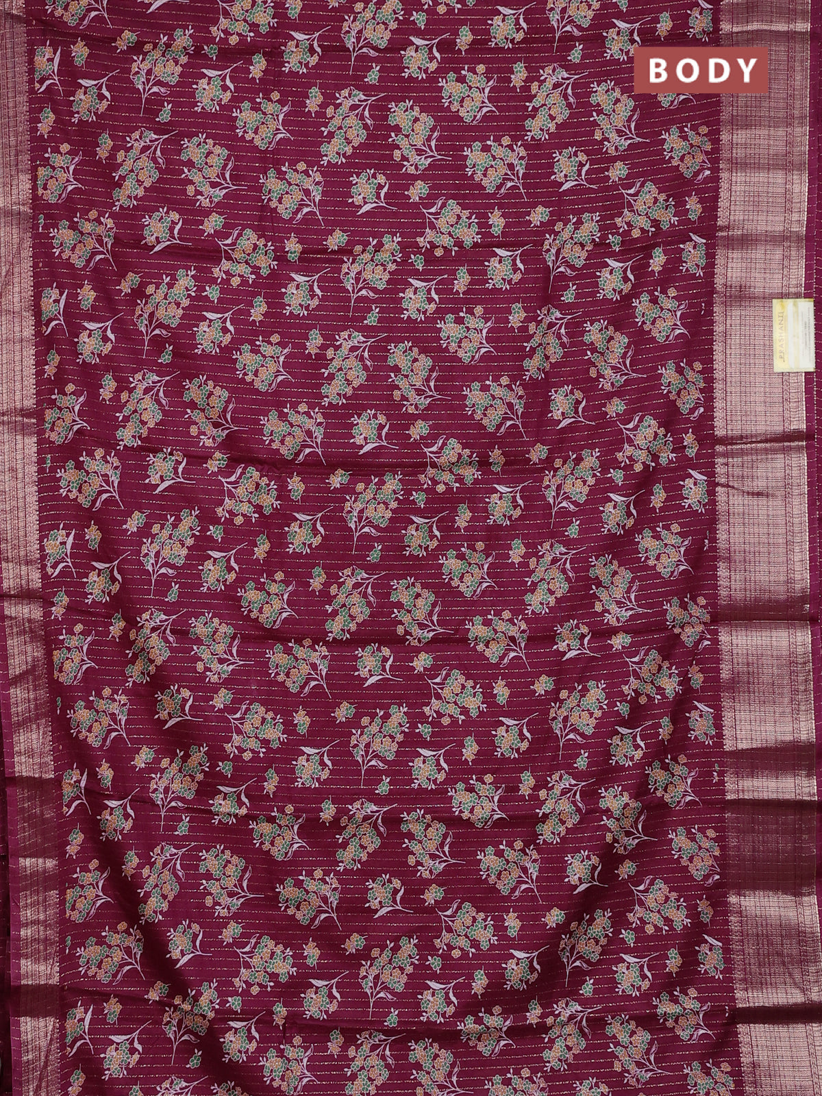 Semi dola saree wine shade with allover floral butta prints & zari weaves and zari woven border