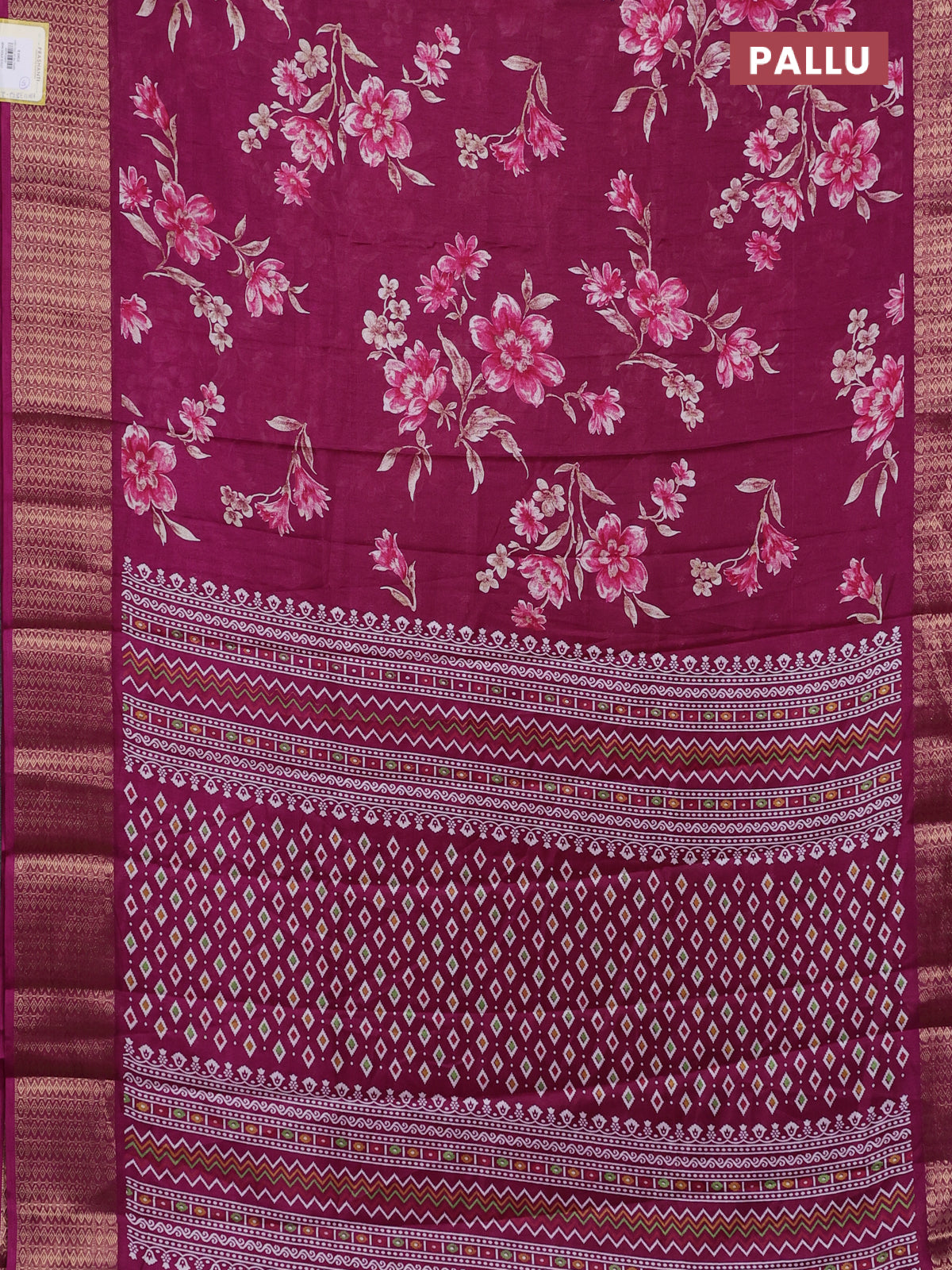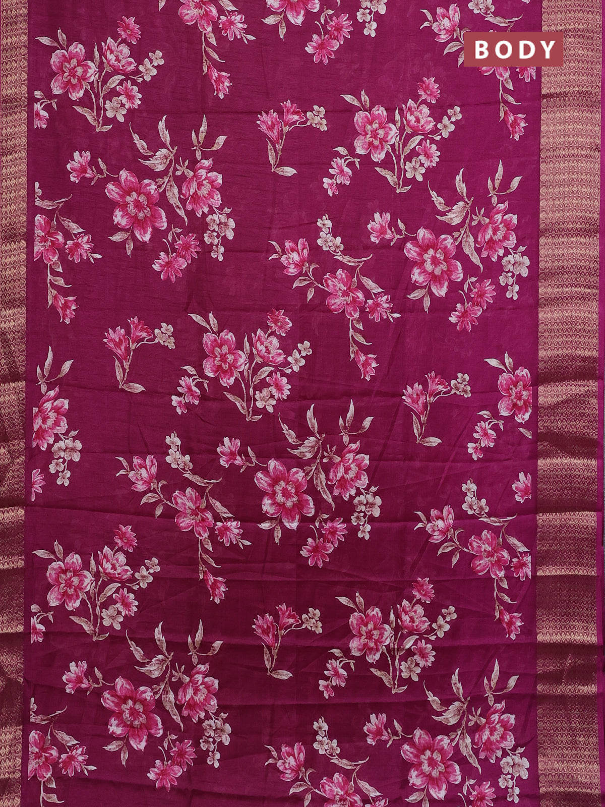 Semi dola saree wine shade with allover floral prints and zari woven border