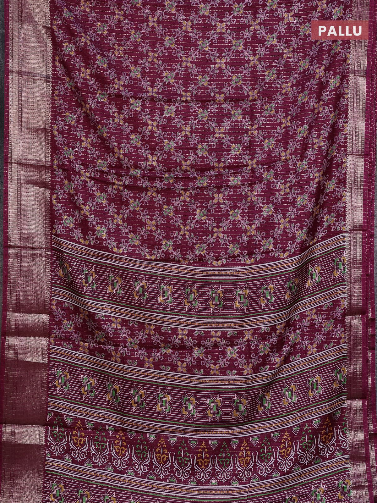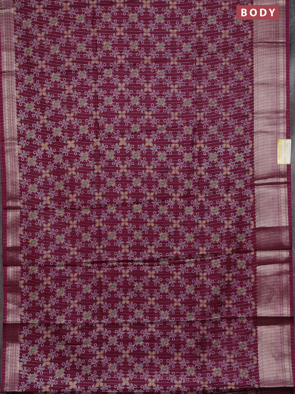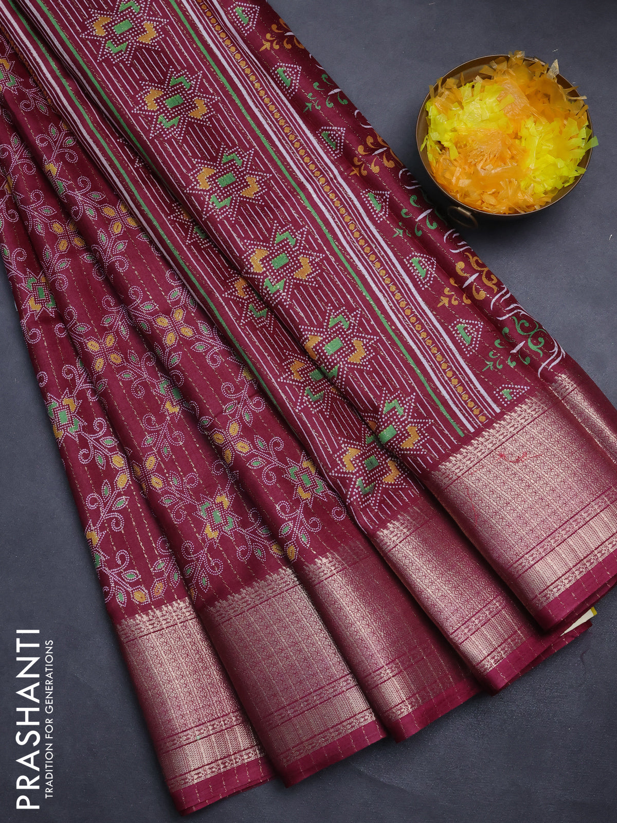 Semi dola saree wine shade with allover prints & zari weaves and zari woven border
