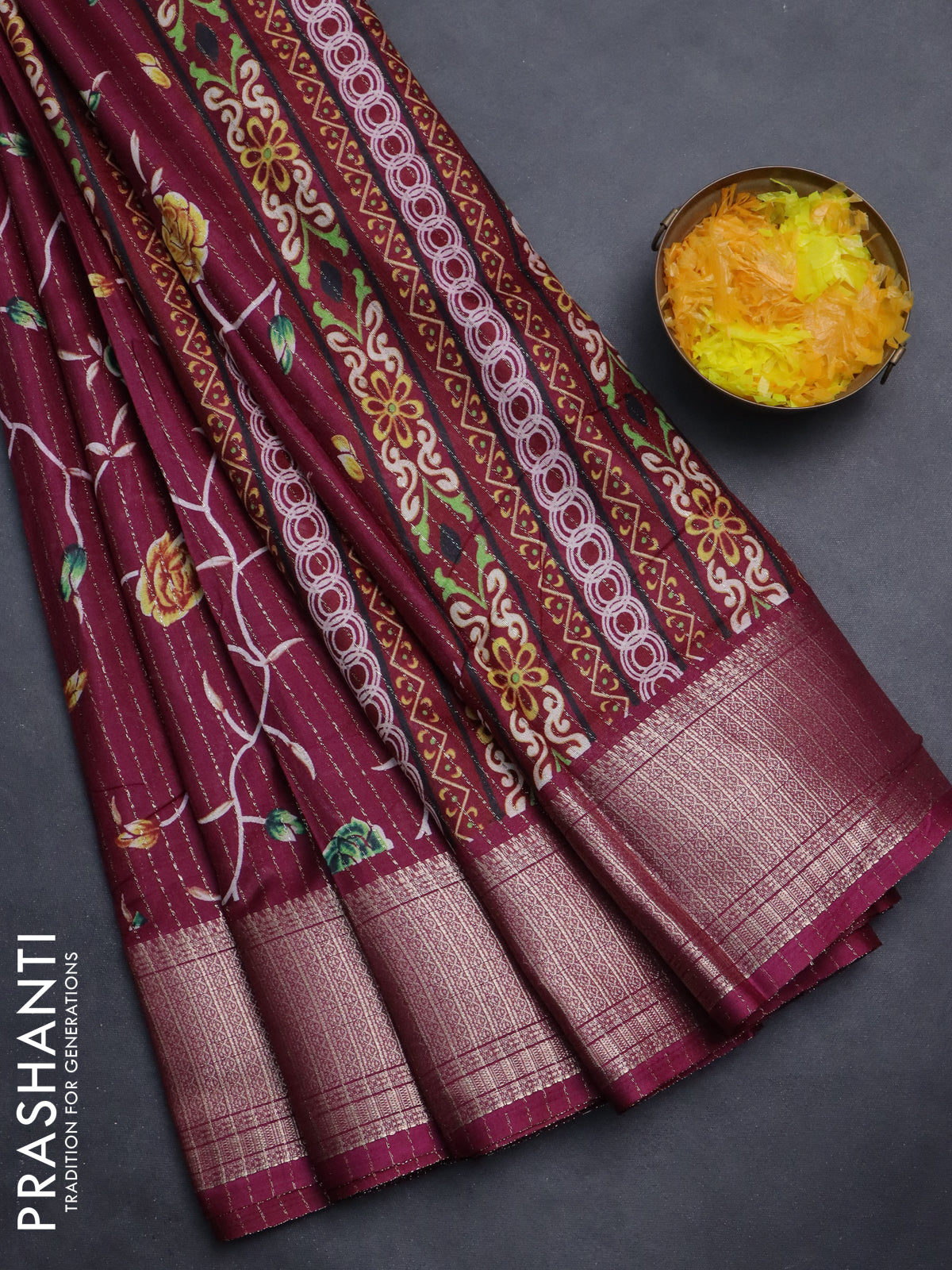 Semi dola saree wine shade with allover prints & zari weaves and zari woven border