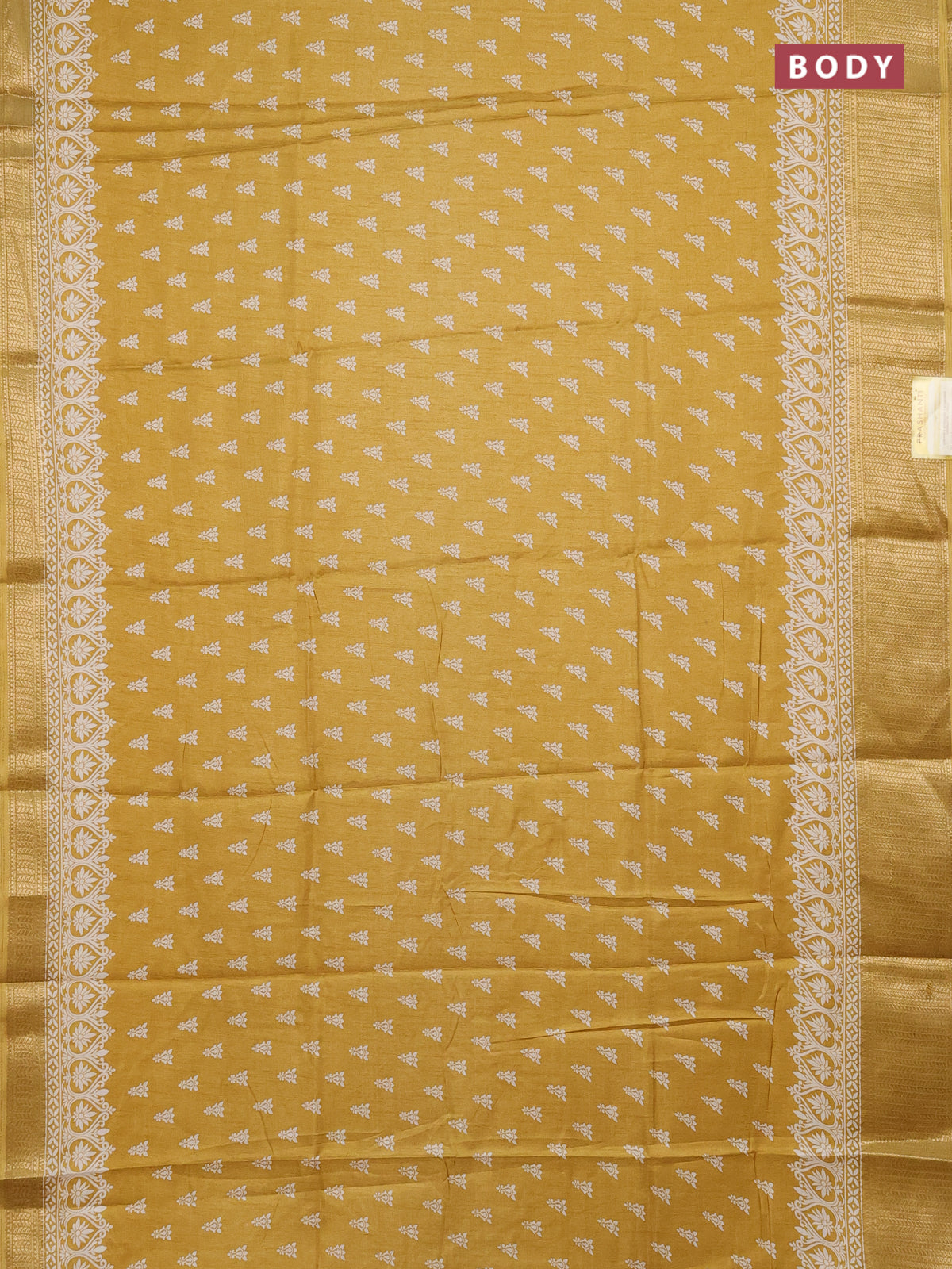Semi dola saree yellow with butta prints and zari woven border