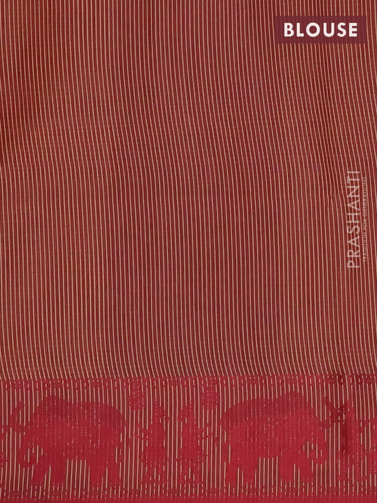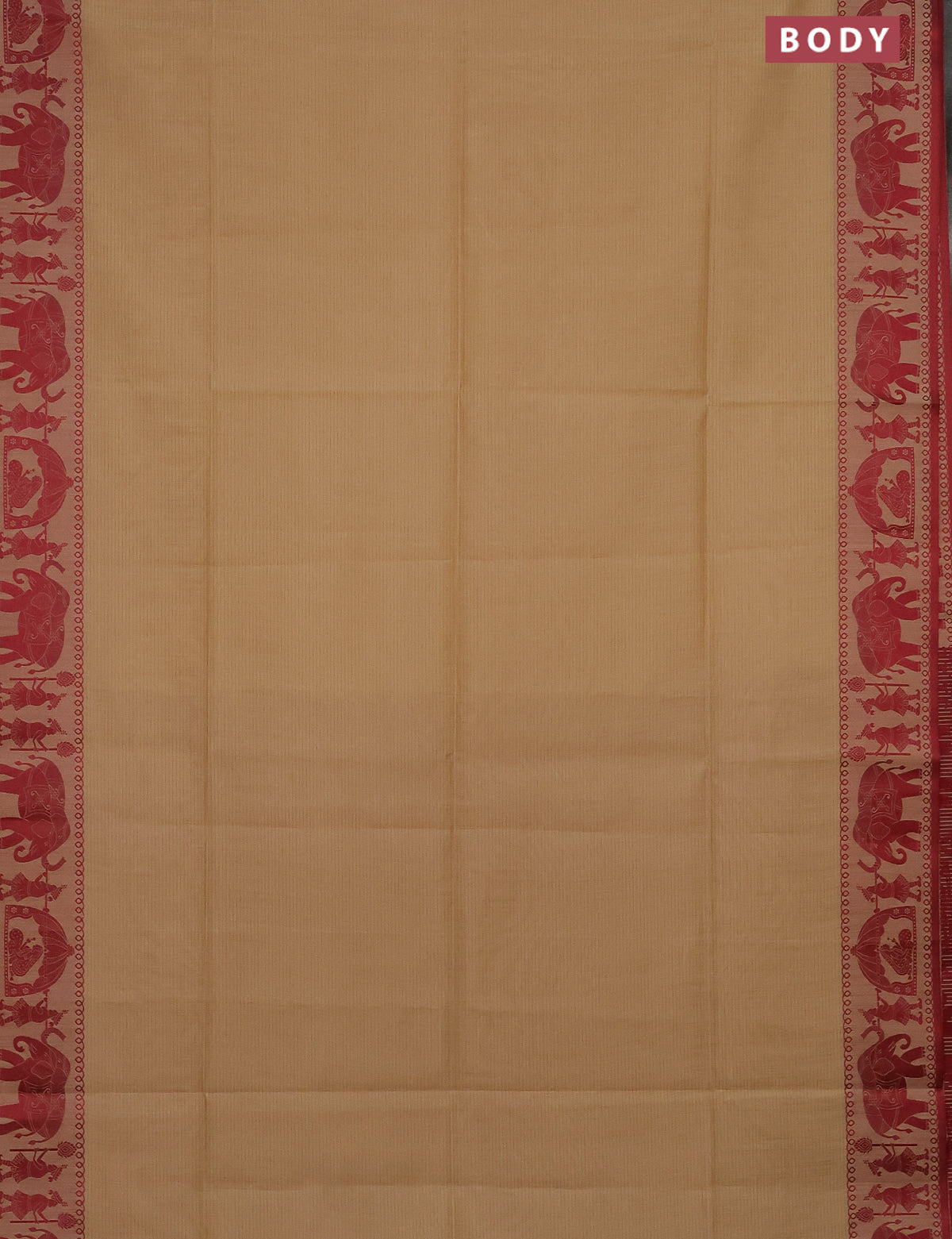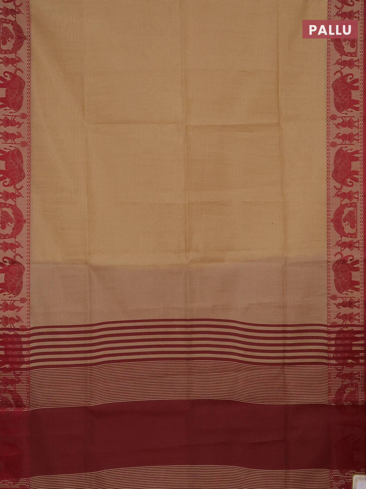 Semi dupion saree beige and maroon with allover stripe pattern and thread woven border