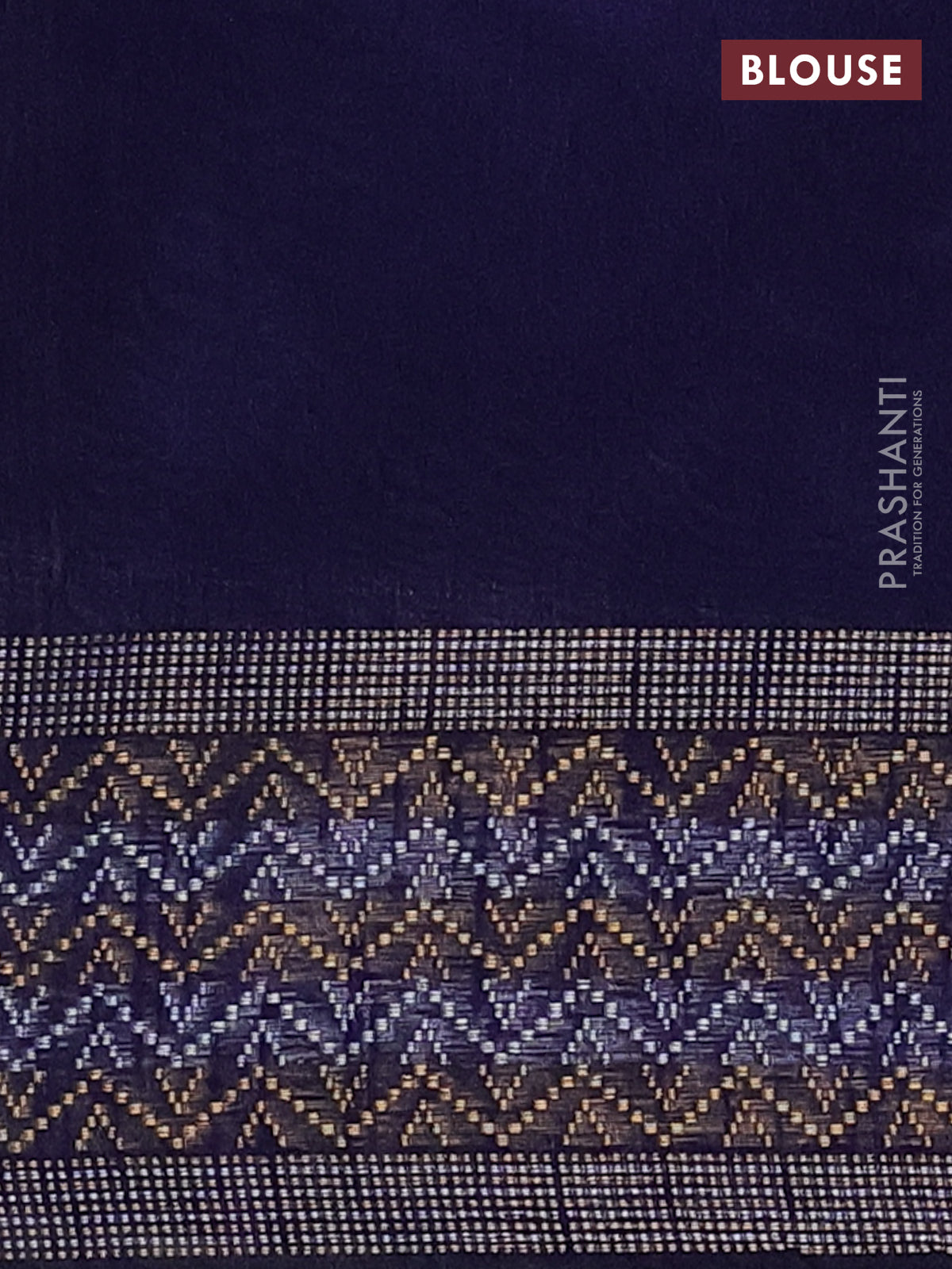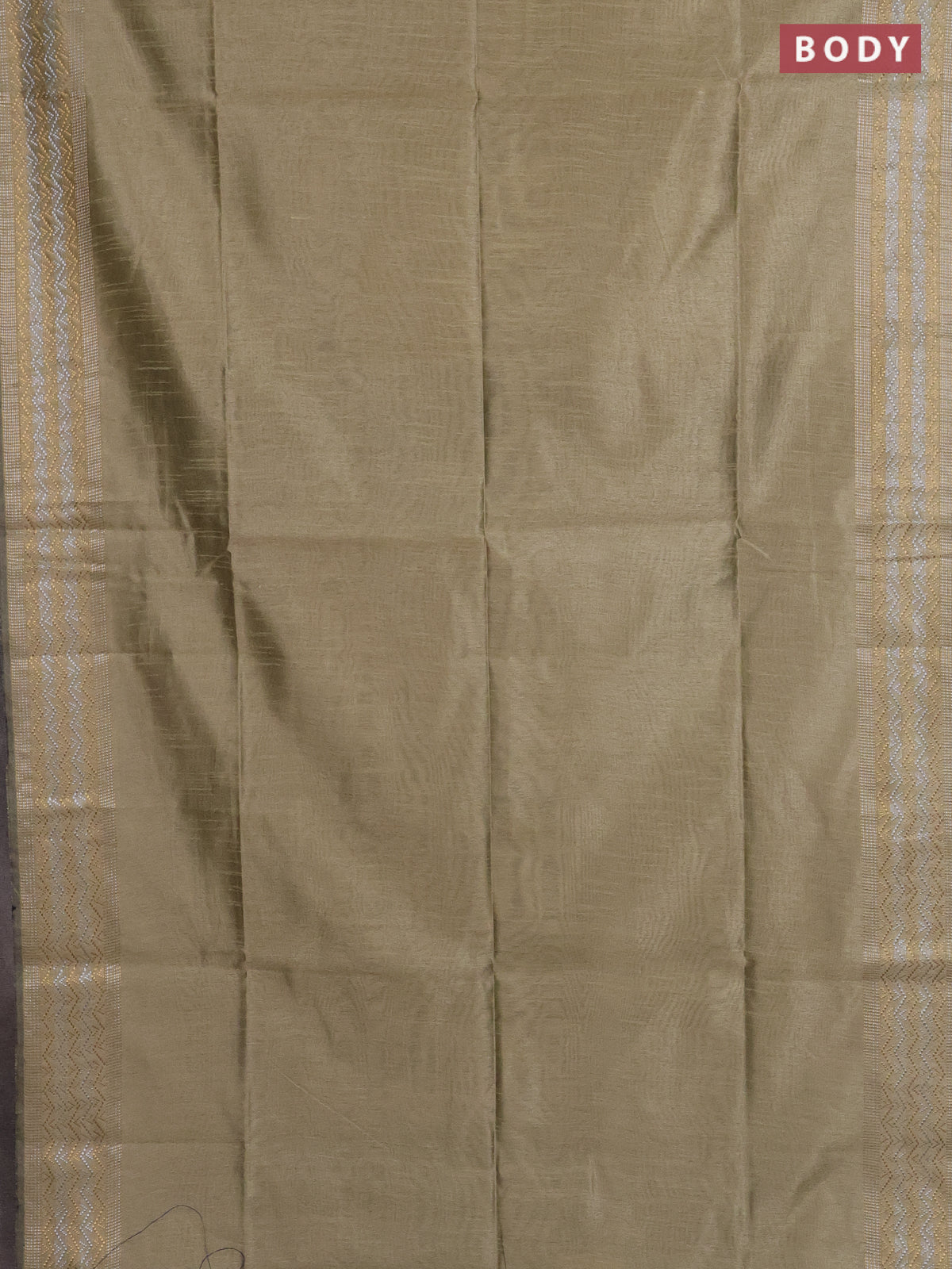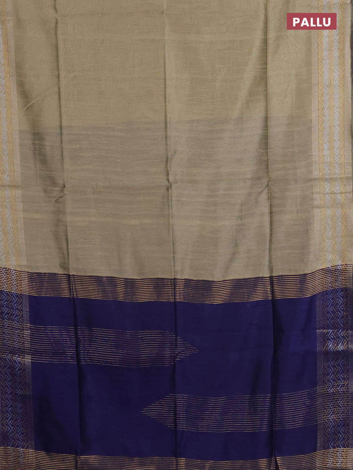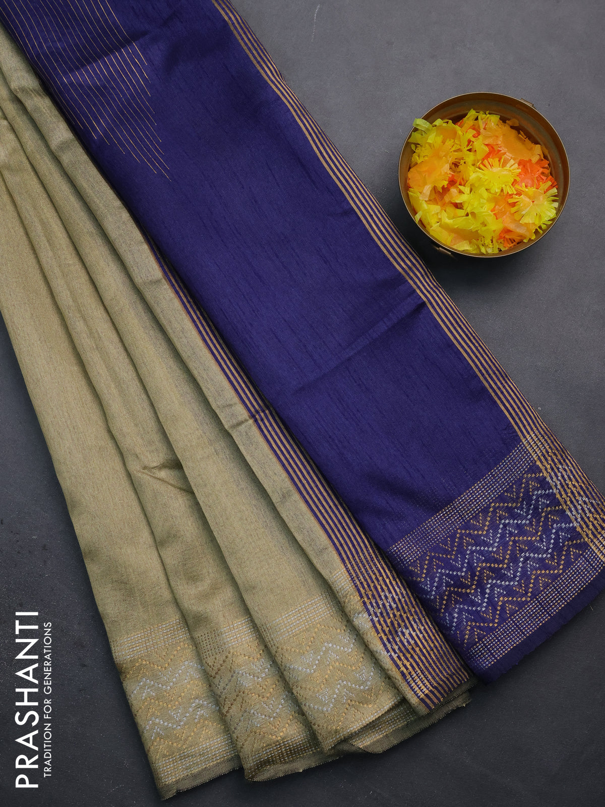 Semi dupion saree beige and navy blue with plain body and silver & gold zari woven border