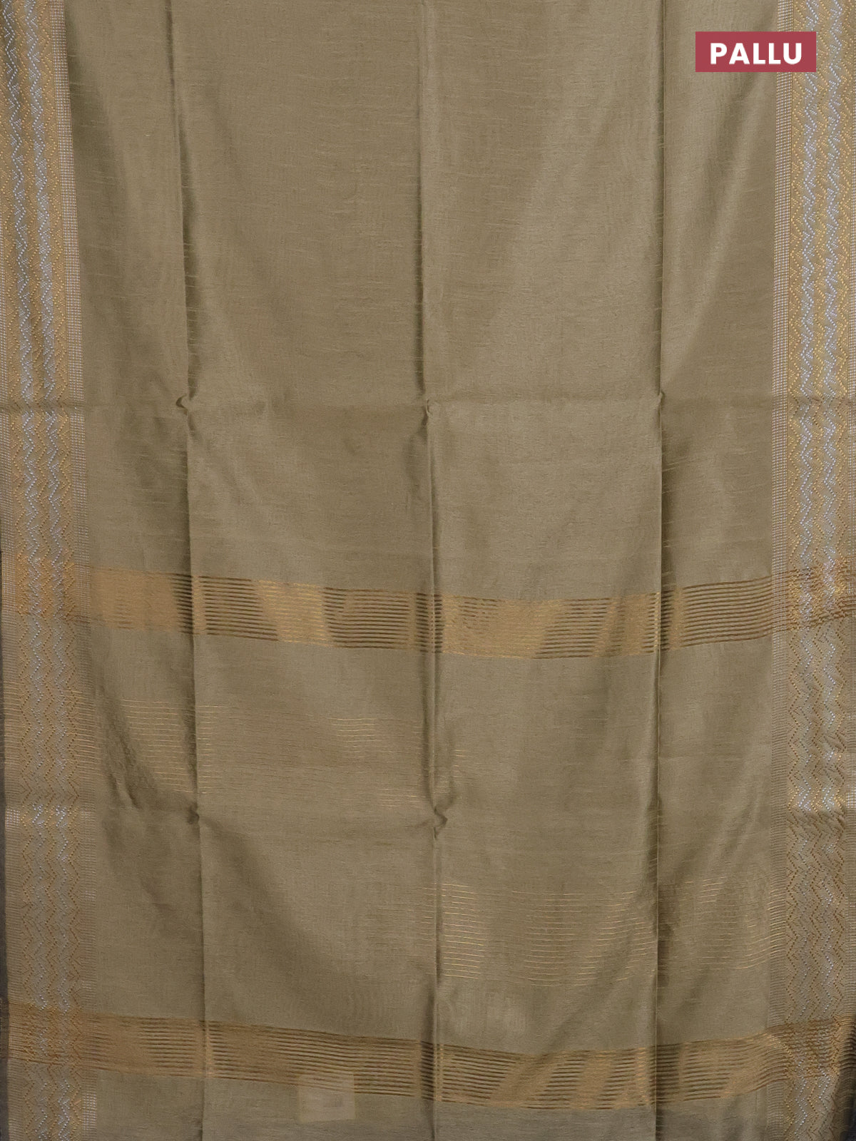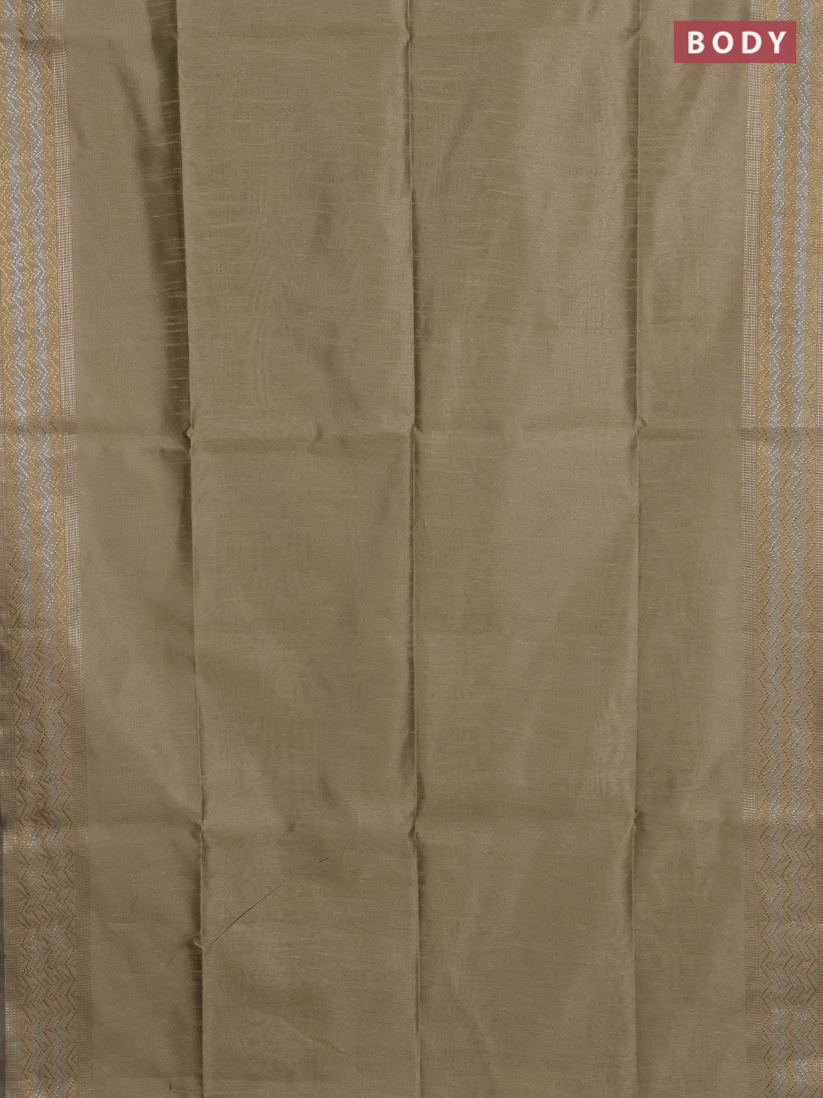 Semi dupion saree beige with plain body and silver & gold zari woven border
