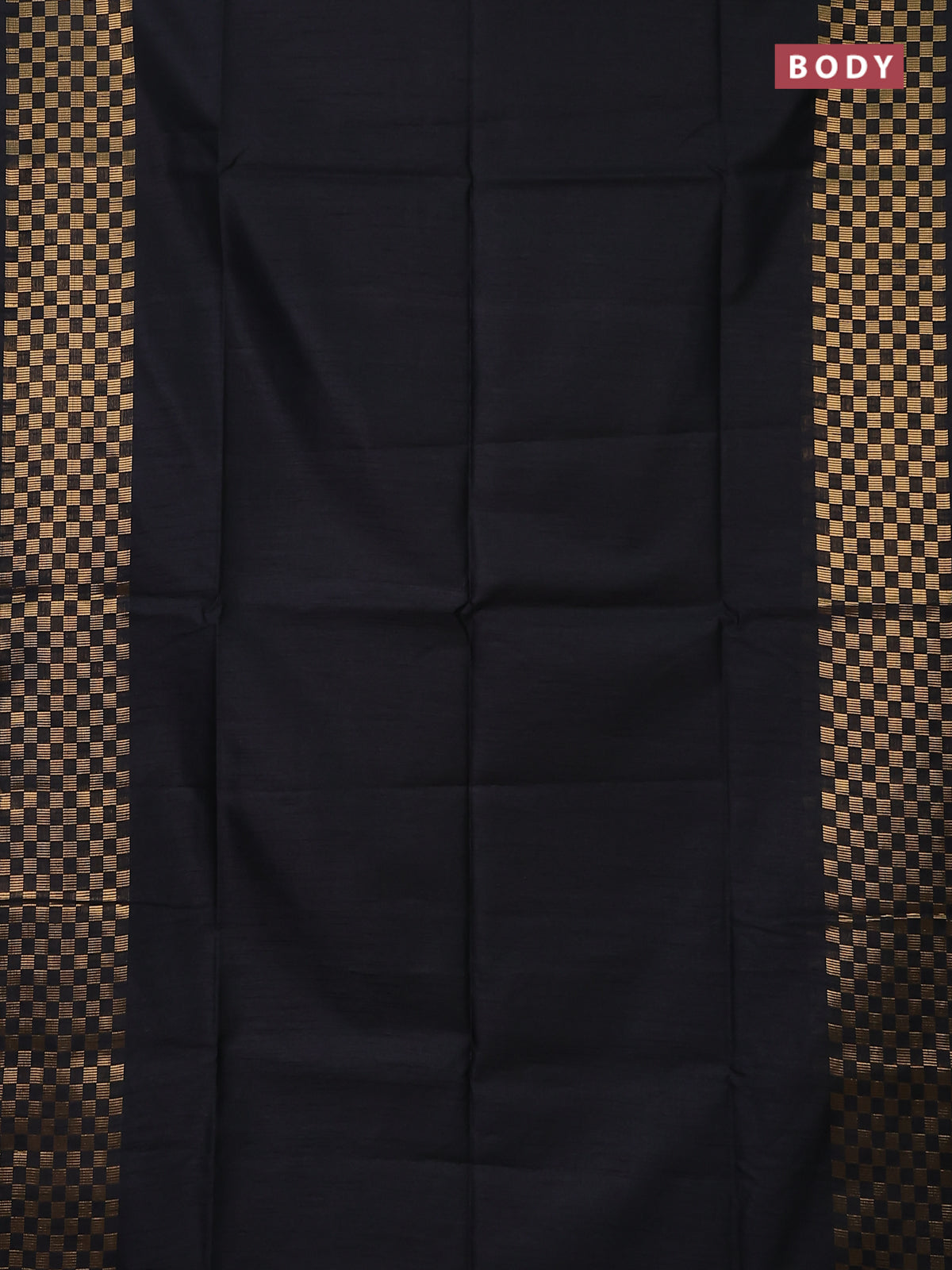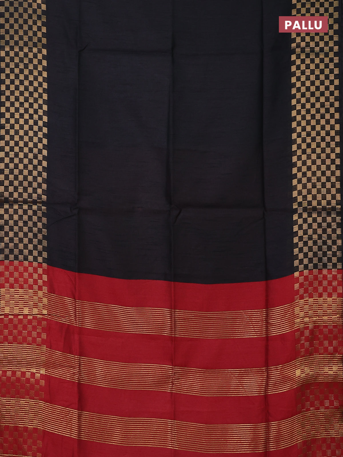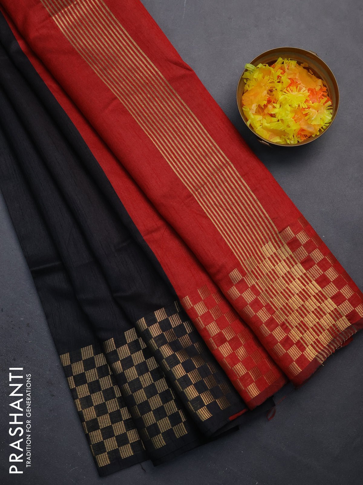 Semi dupion saree black and maroon with plain body and zari woven checked border