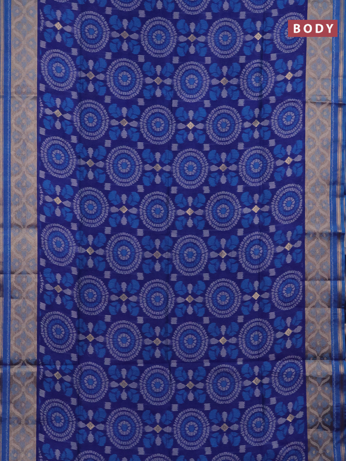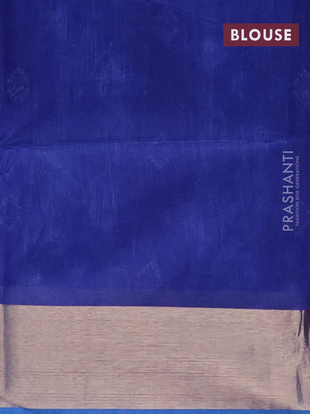 Semi dupion saree blue and cs blue with allover thread weaves and zari woven border