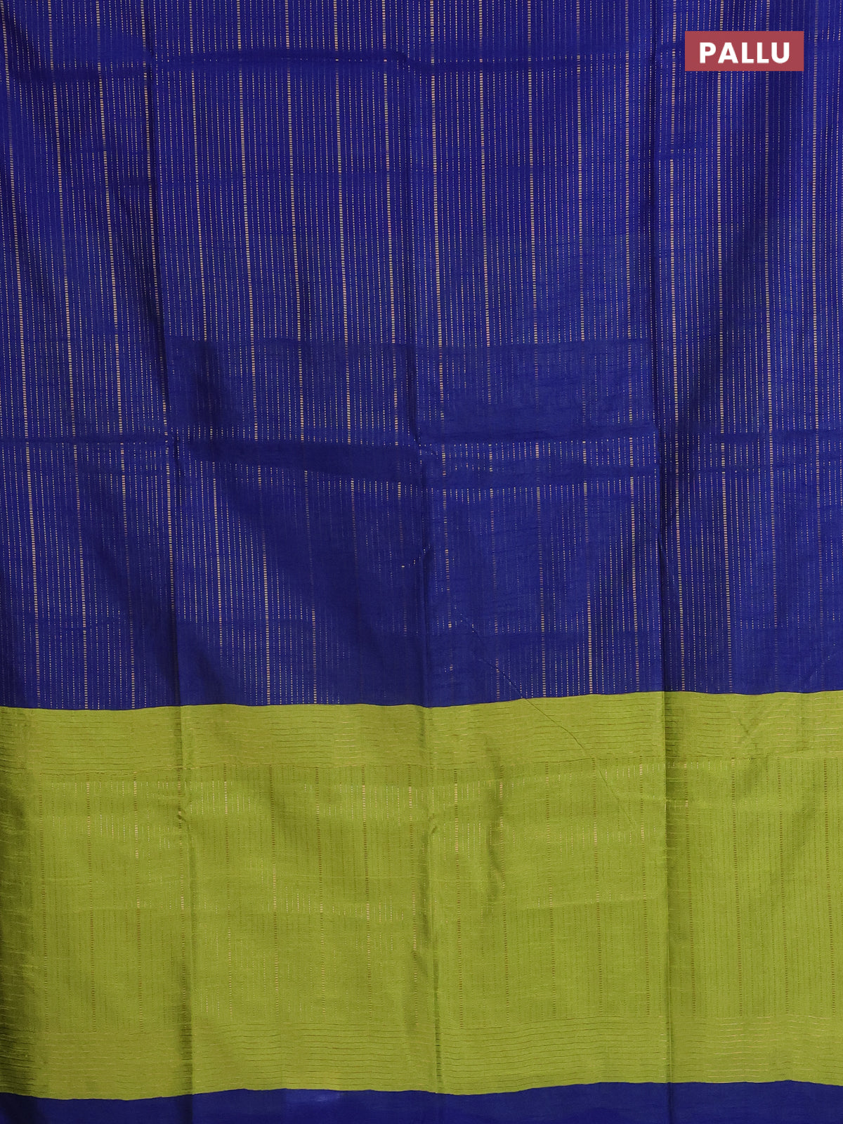 Semi dupion saree blue and fluorescent green with allover zari weaves in borderless style
