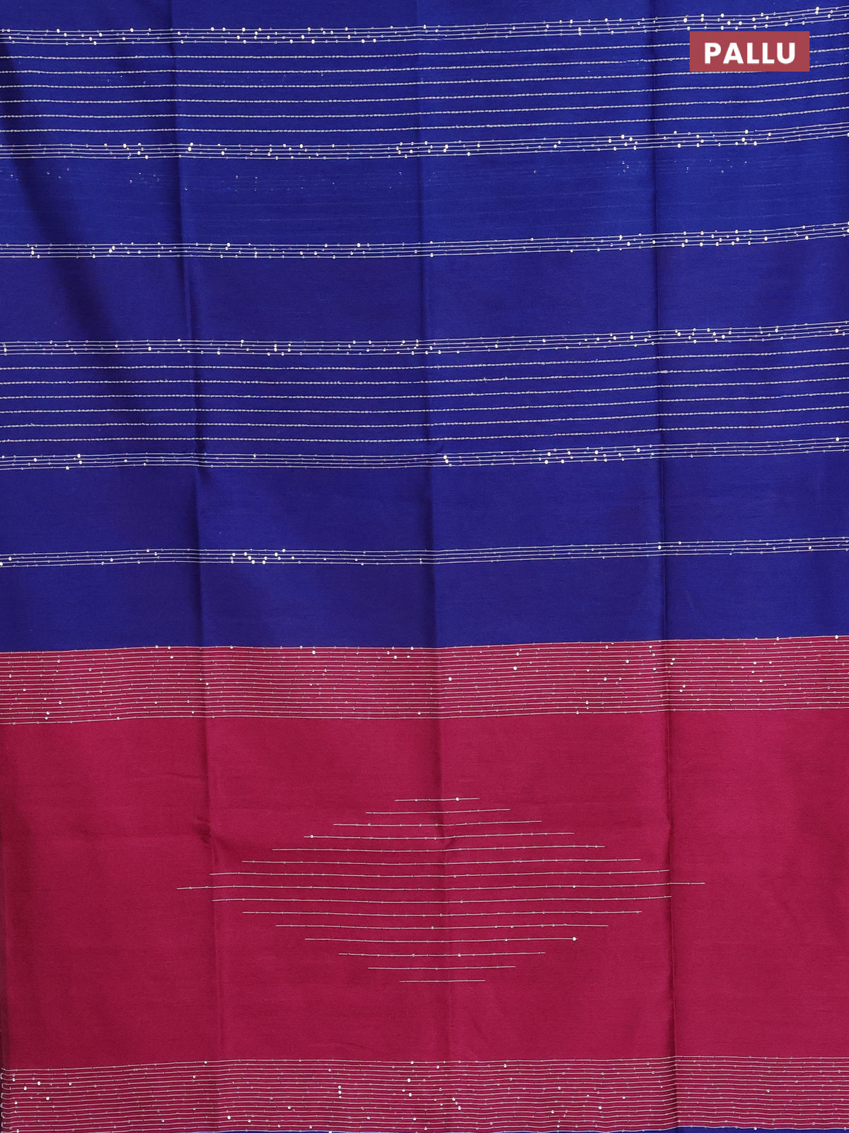 Semi dupion saree blue and magenta pink with allover thread & sequin weaves and sequin work pallu