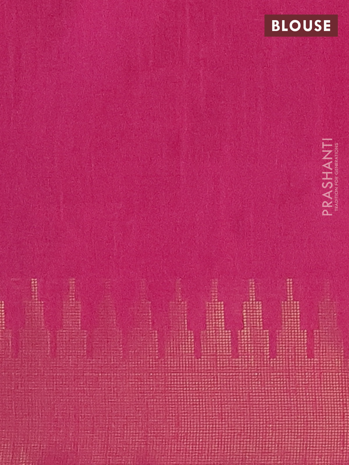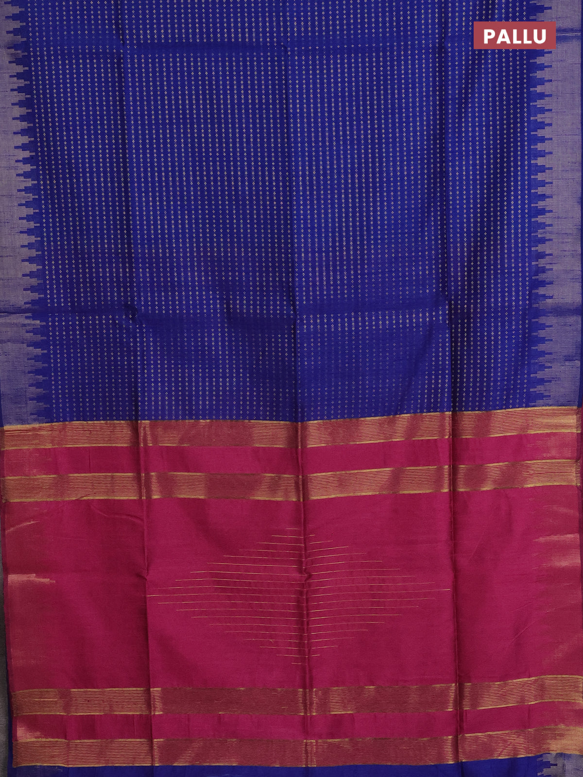 Semi dupion saree blue and magenta pink with allover zari woven butta weaves and temple design zari woven border