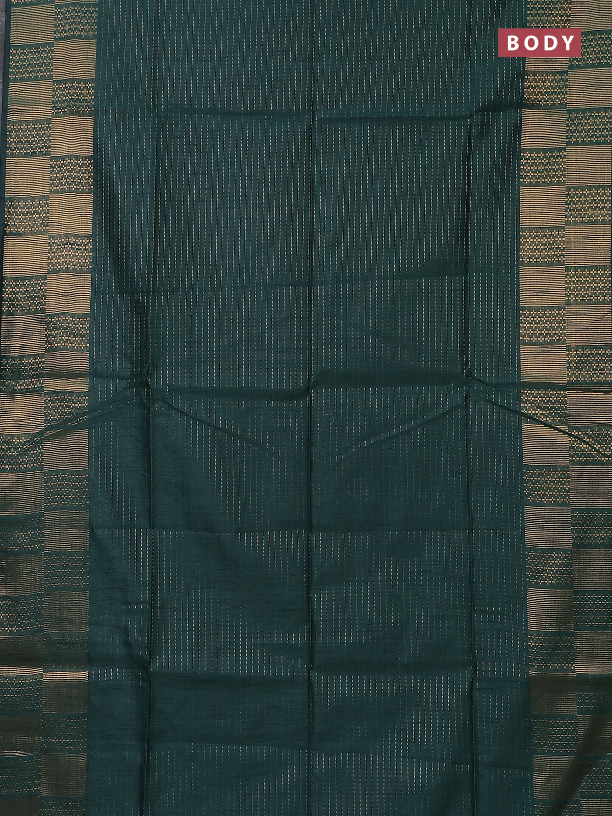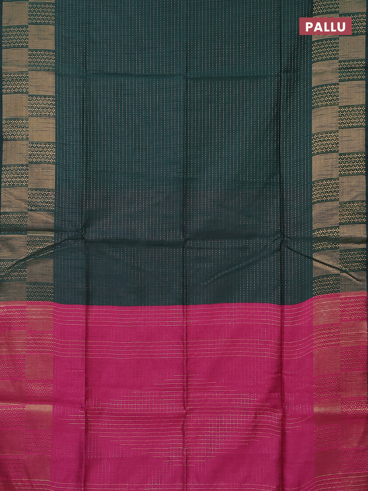 Semi dupion saree bottle green and pink with allover zari stripe weaves and zari woven border