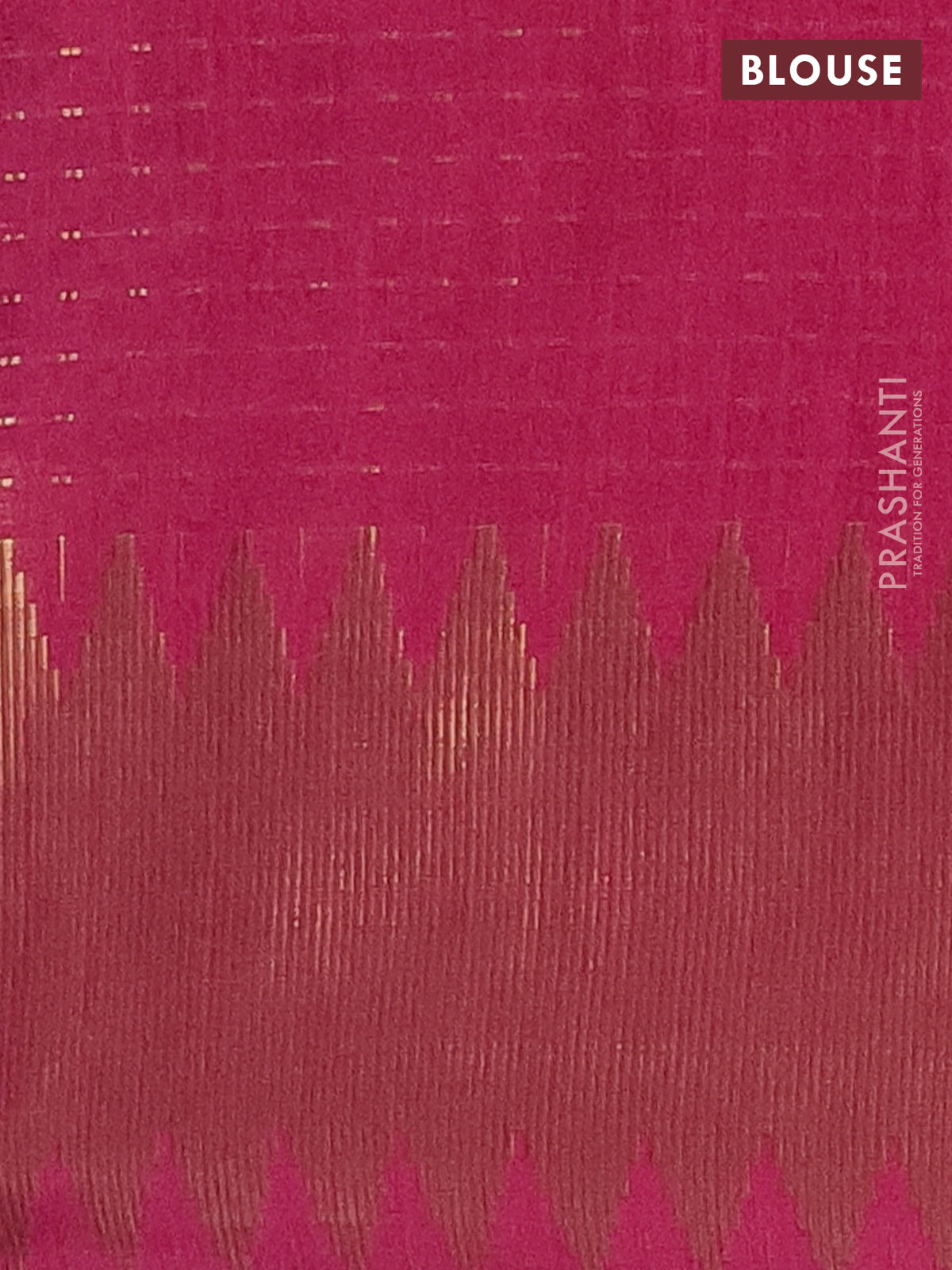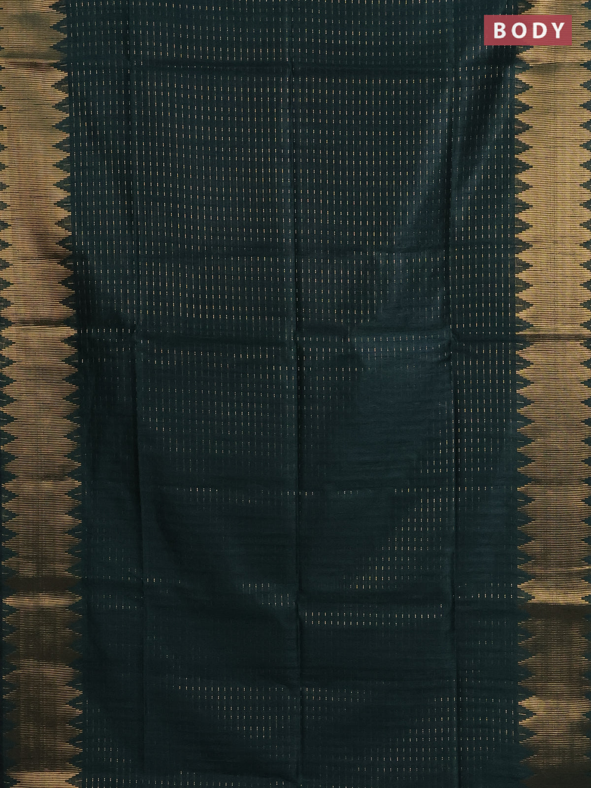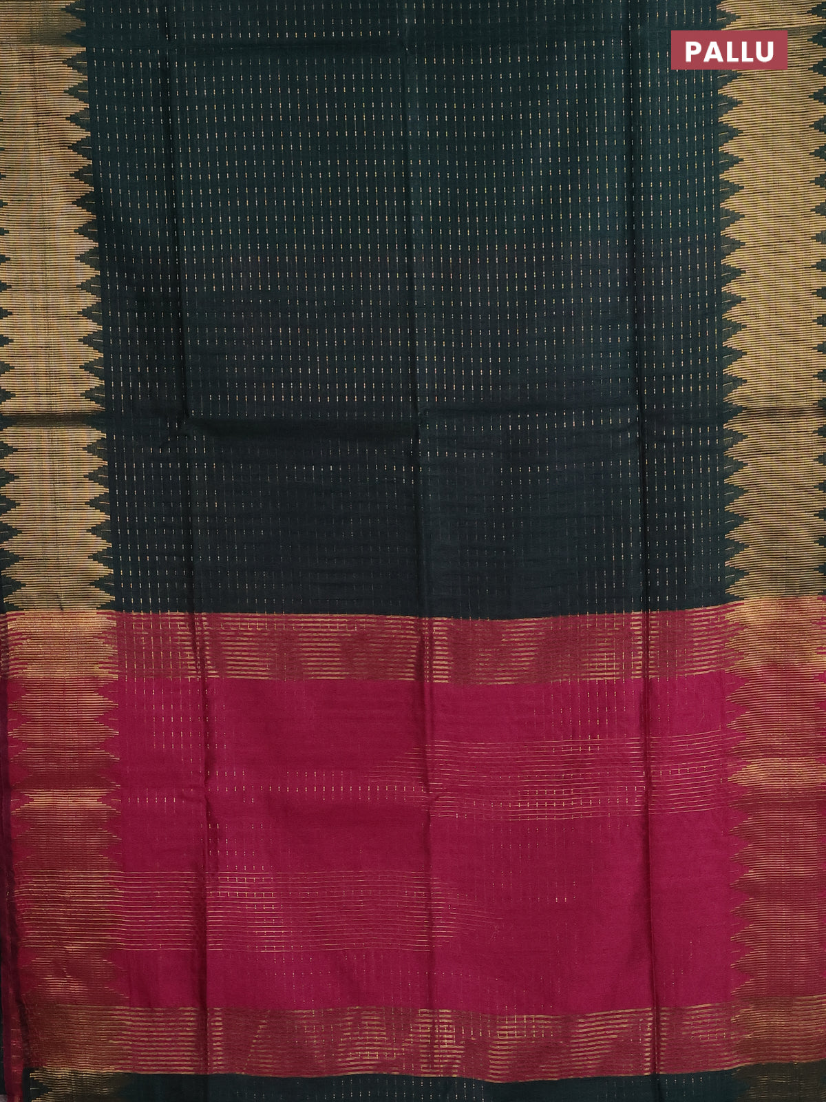Semi dupion saree bottle green and pink with allover zari woven butta weaves and temple zari woven border
