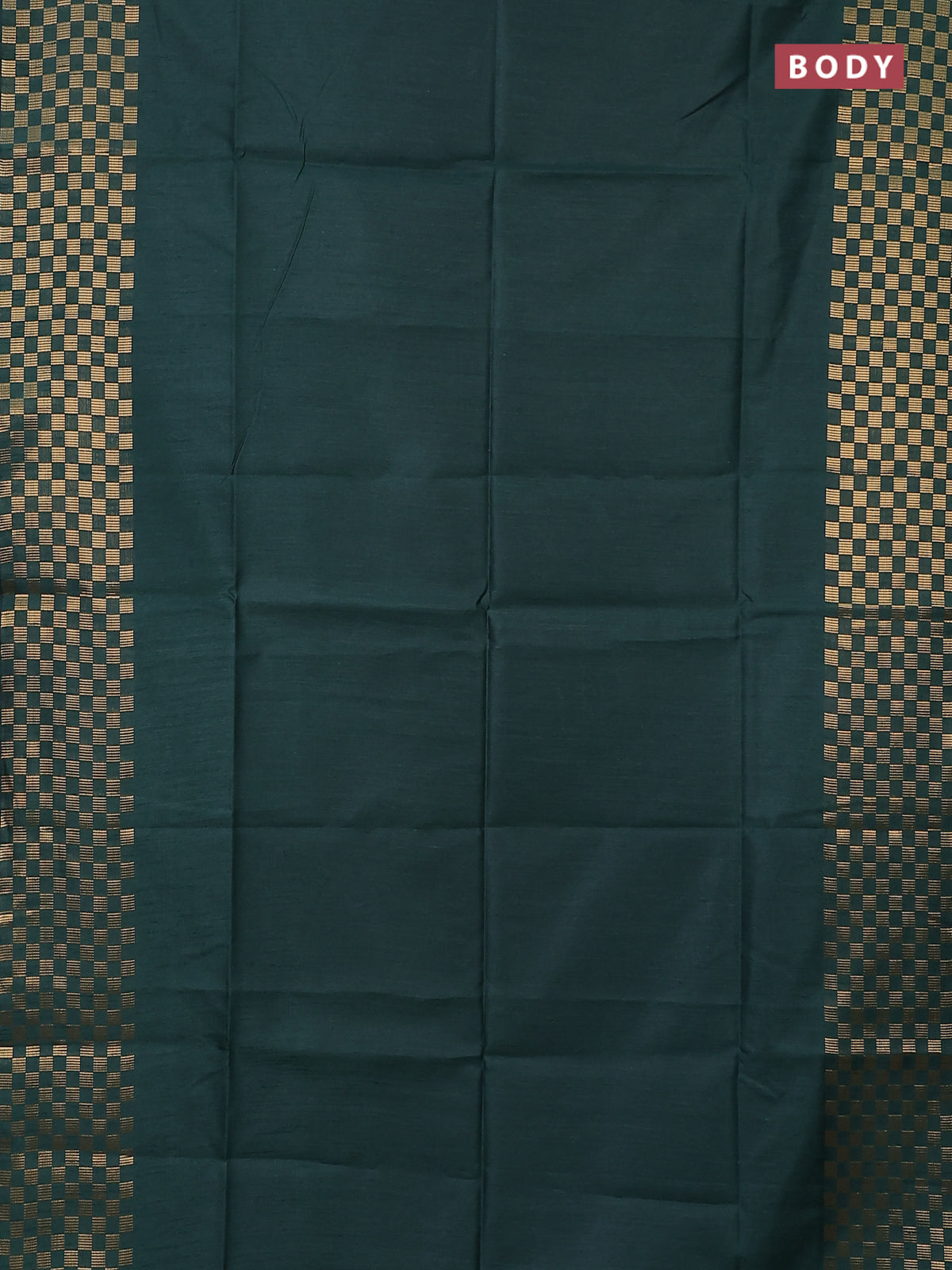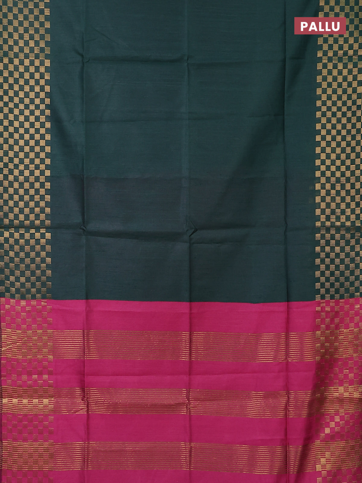 Semi dupion saree bottle green and pink with plain body and zari woven checked border