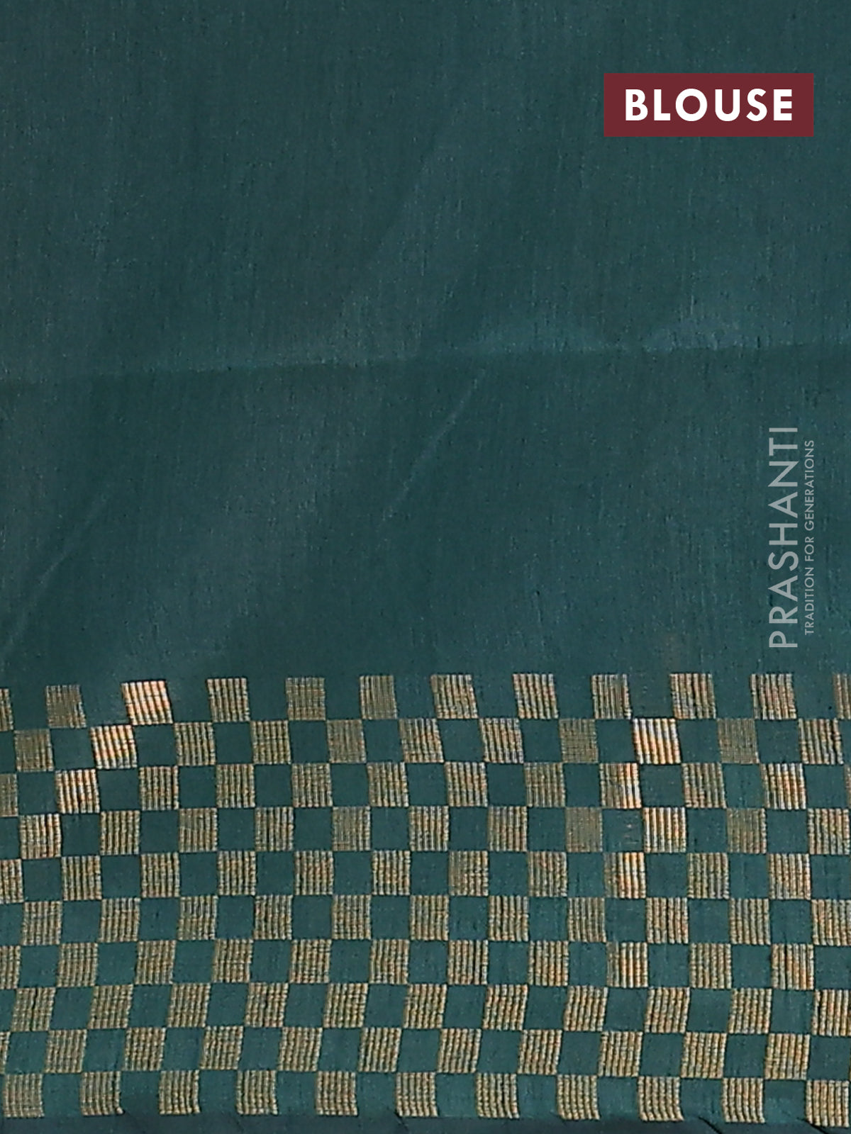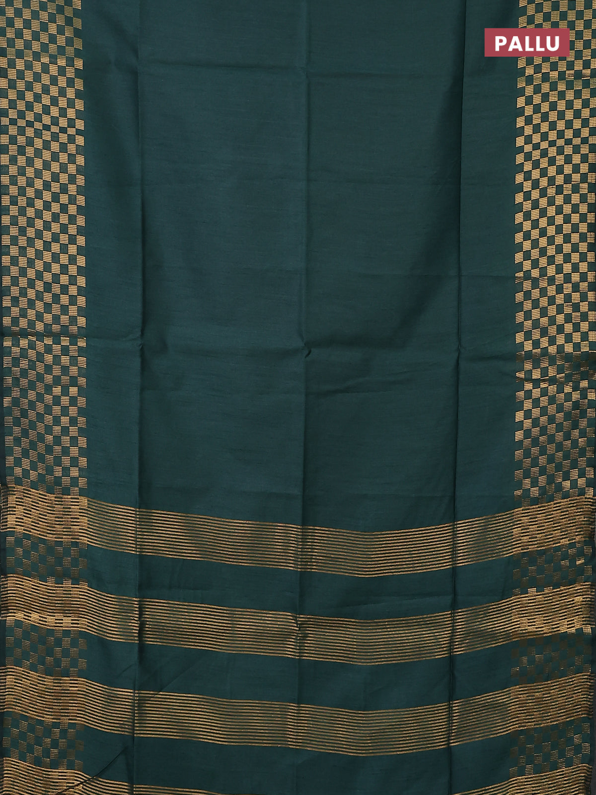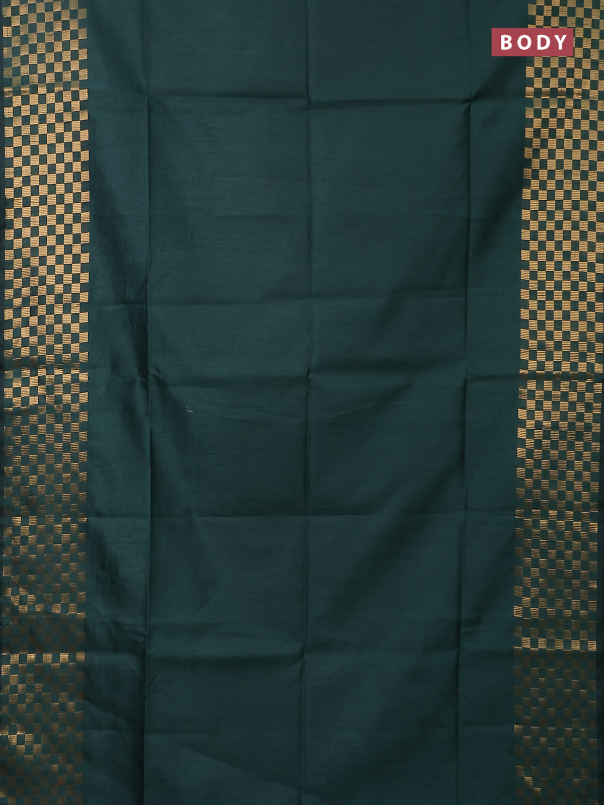 Semi dupion saree bottle green with plain body and zari woven checked border