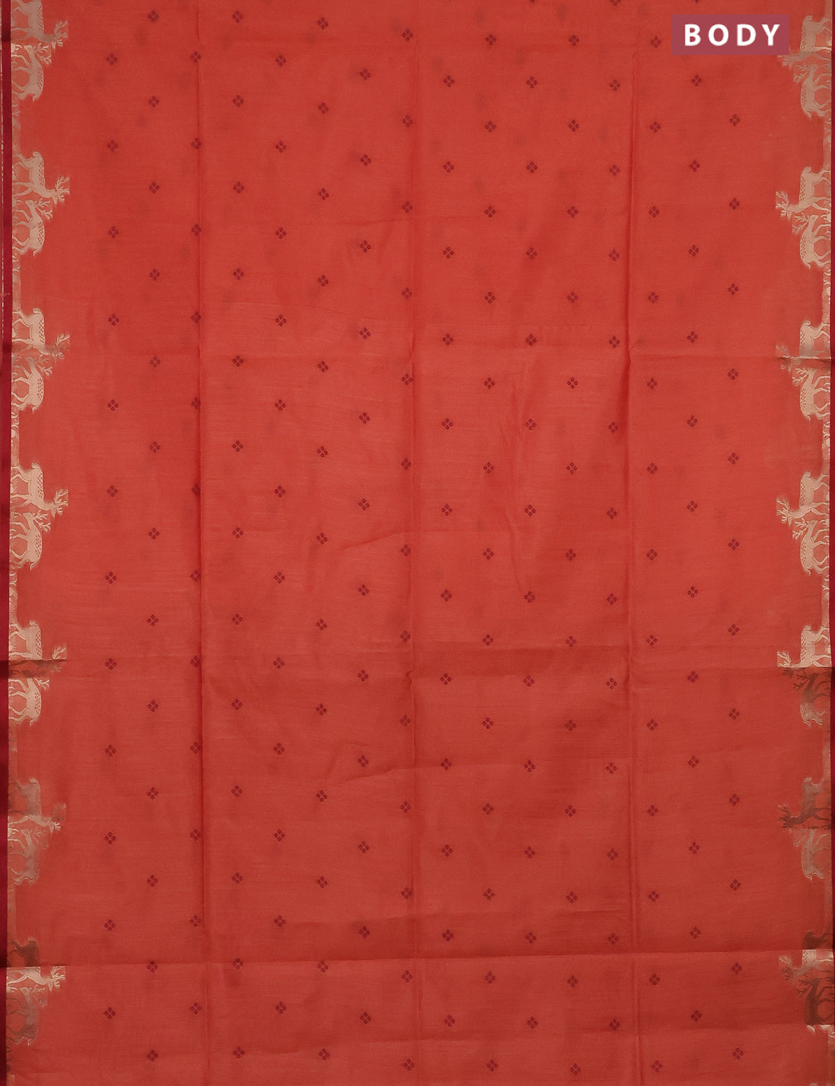 Semi dupion saree dark peach and maroon with thread woven buttas and deer zari woven butta border