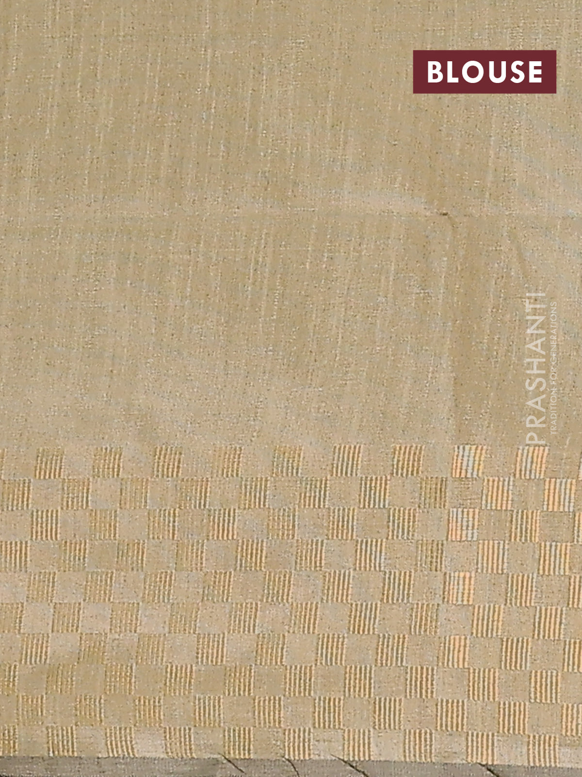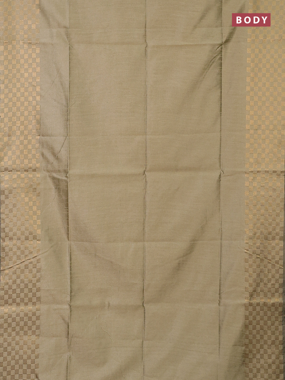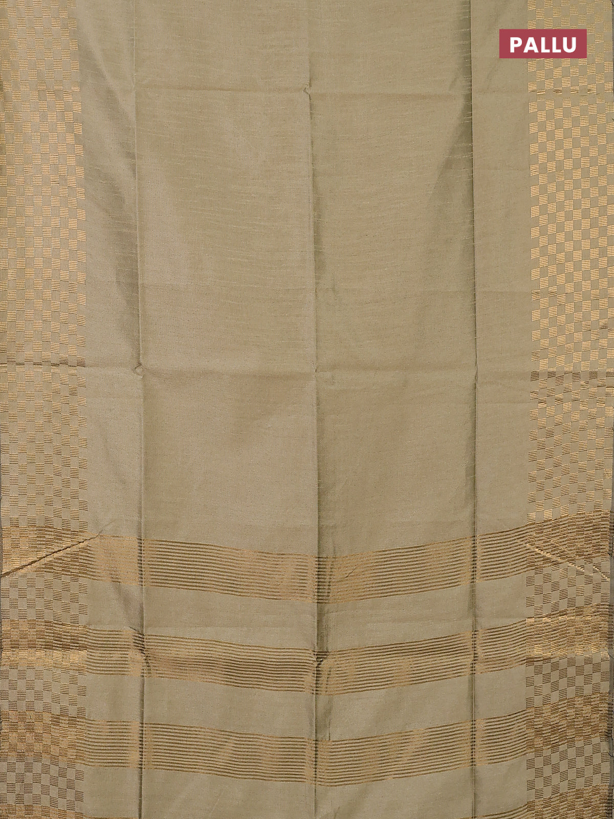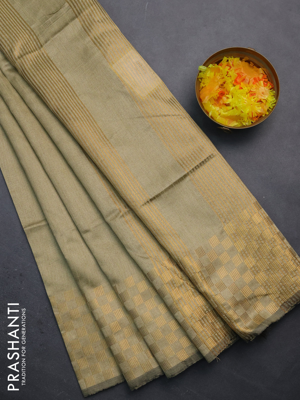 Semi dupion saree elaichi green with plain body and zari woven checked border