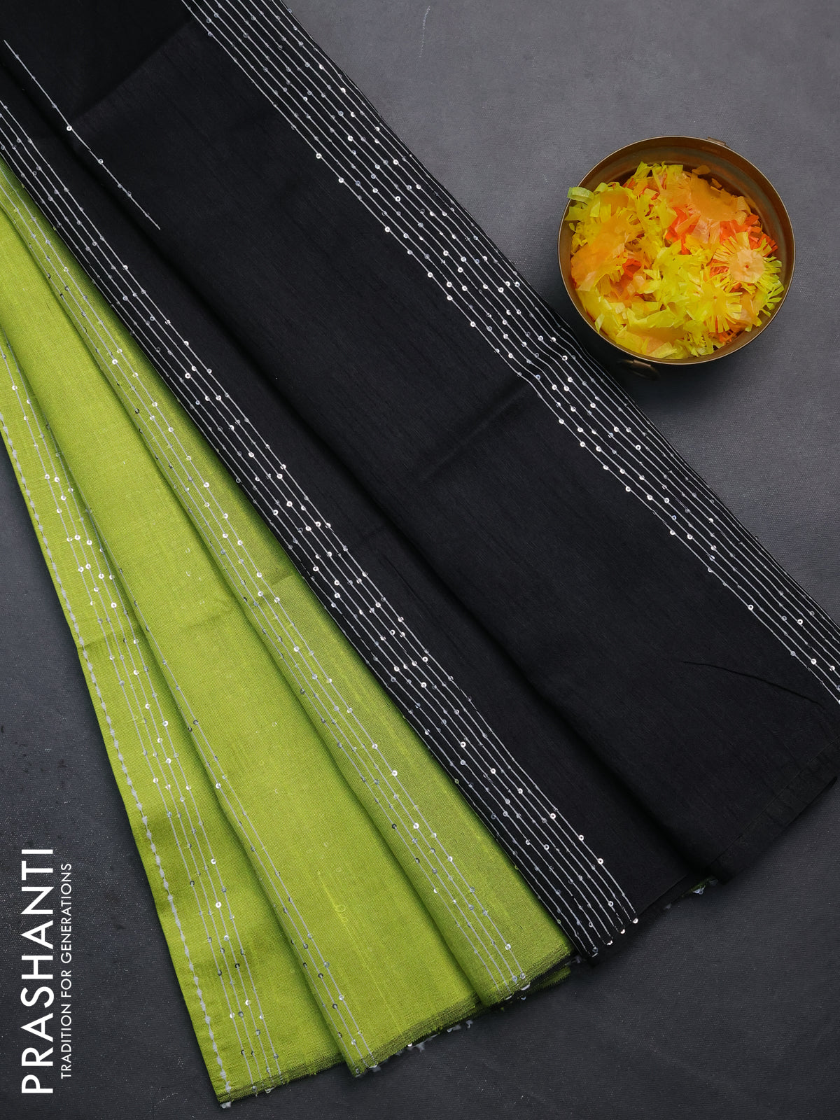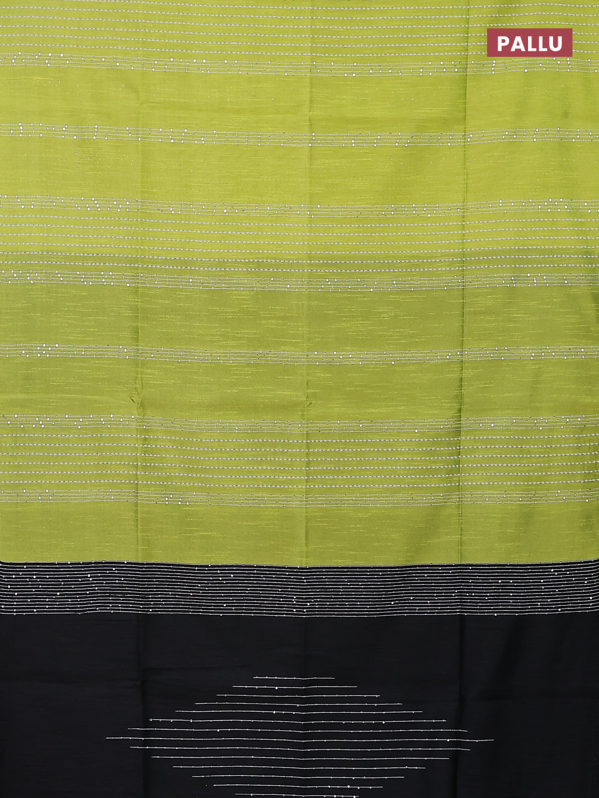 Semi dupion saree fluorescent green and black with allover thread & sequin weaves and sequin work pallu