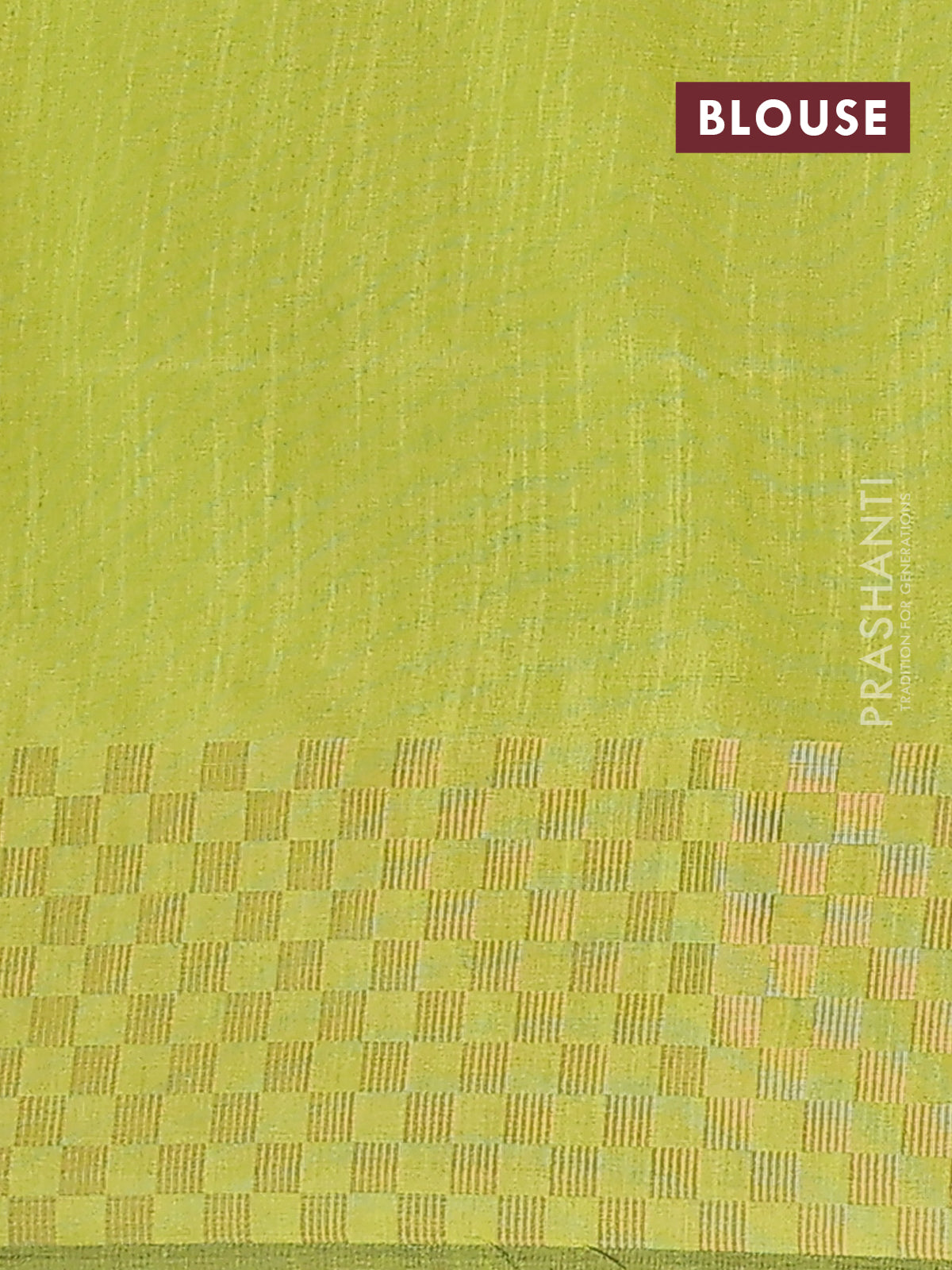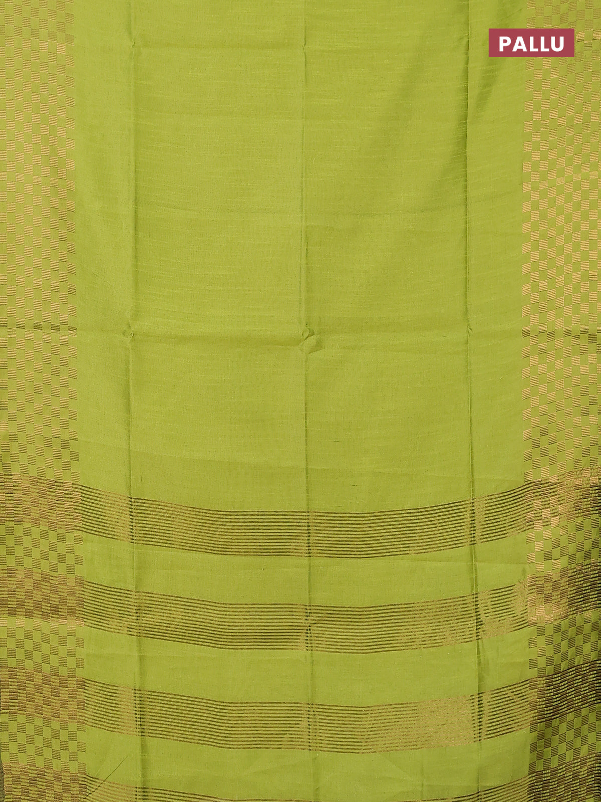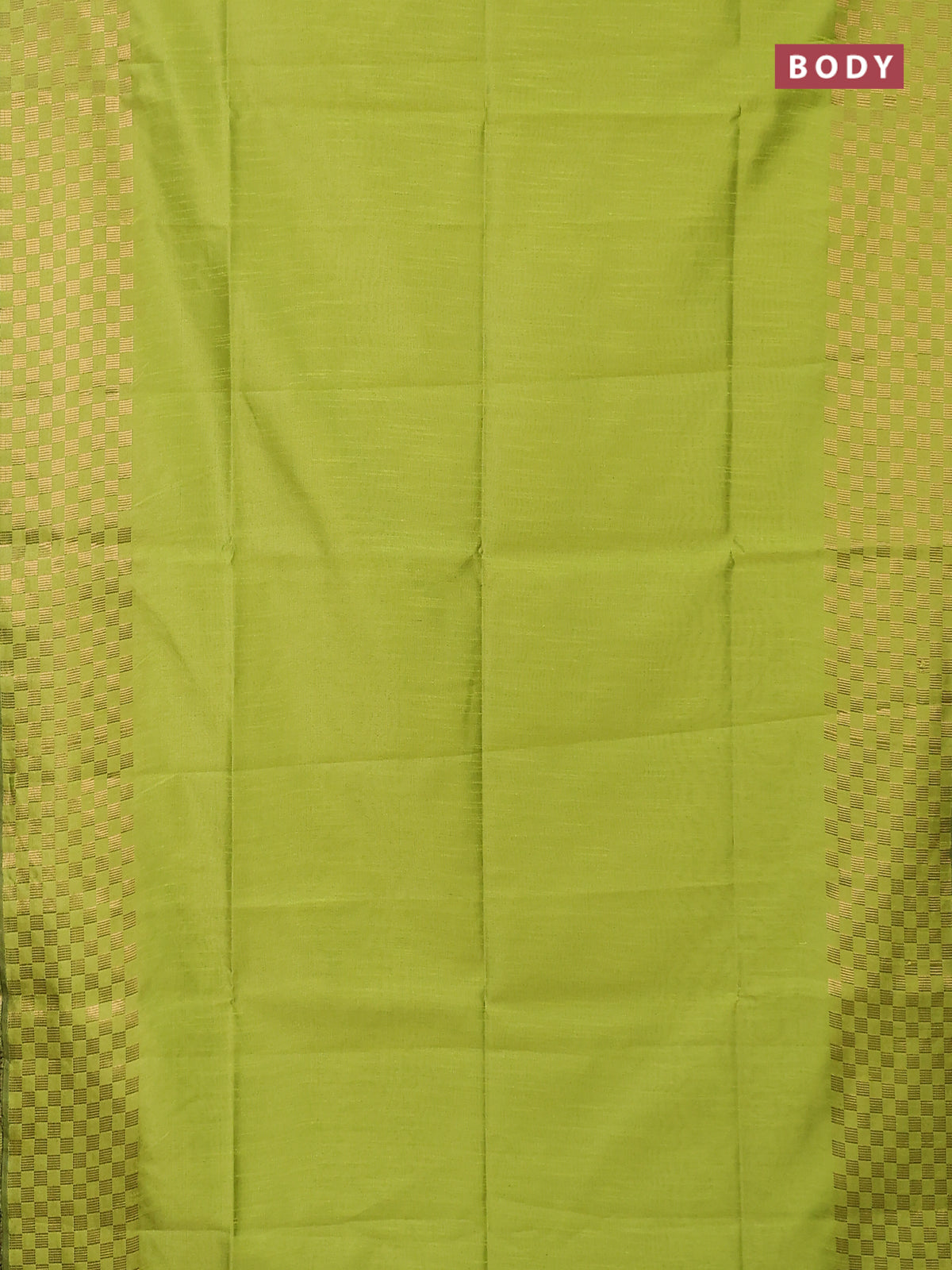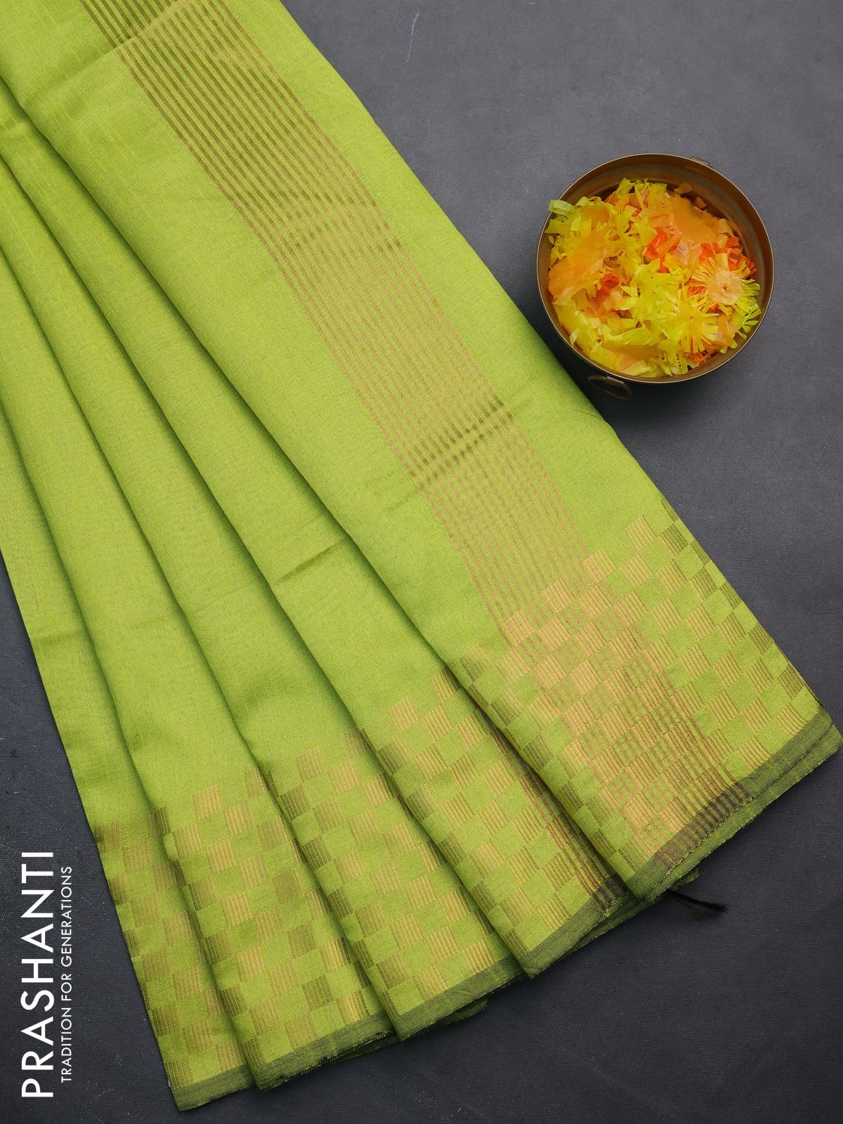 Semi dupion saree fluorescent green with plain body and zari woven checked border