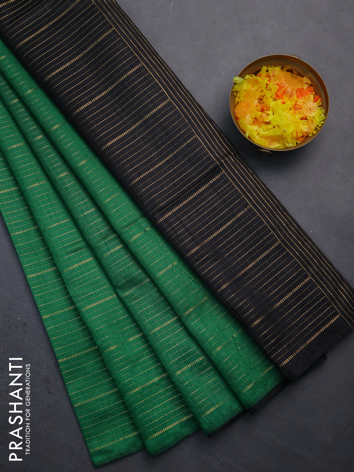 Semi dupion saree green and black with allover zari weaves in borderless style