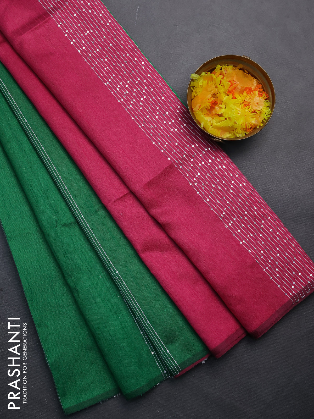 Semi dupion saree green and pink with allover thread & sequin weaves and sequin work pallu