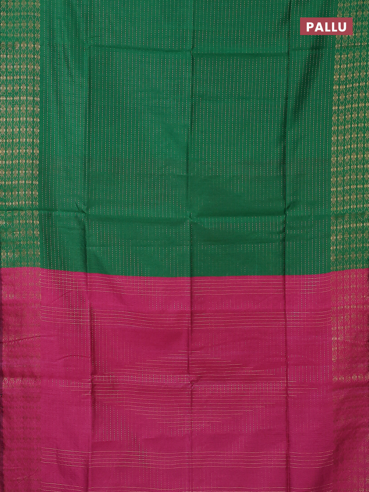 Semi dupion saree green and pink with allover zari stripe weaves and zari woven border