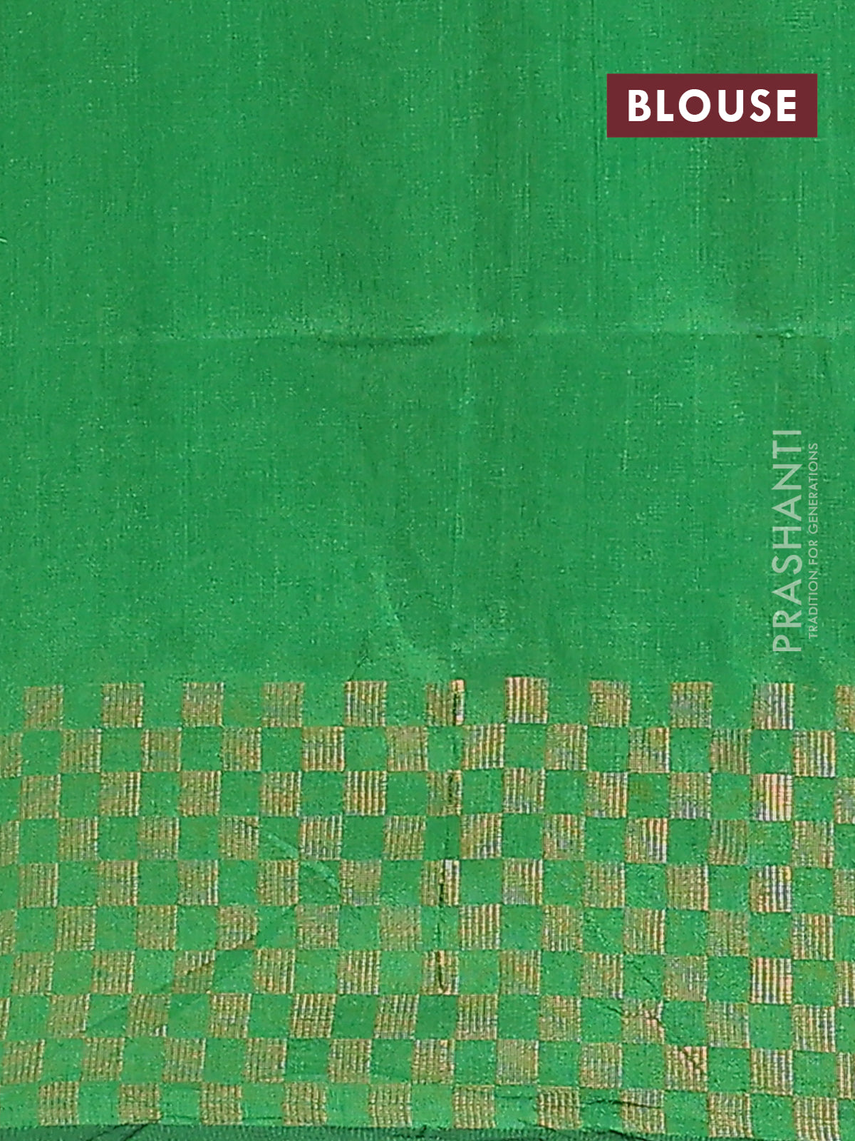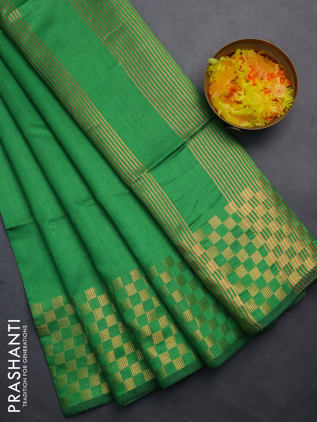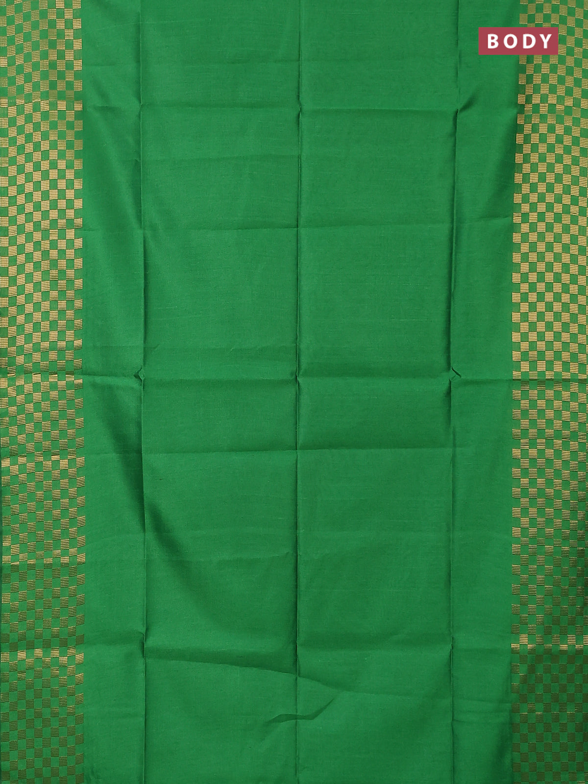 Semi dupion saree green with plain body and zari woven checked border