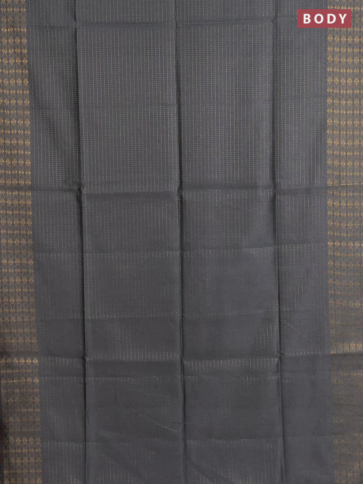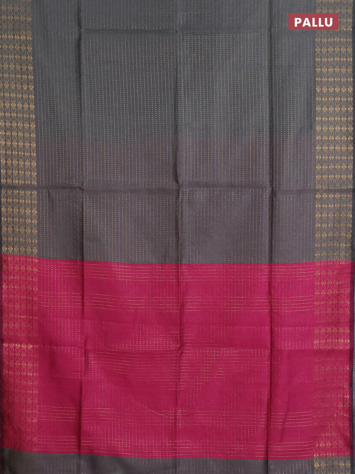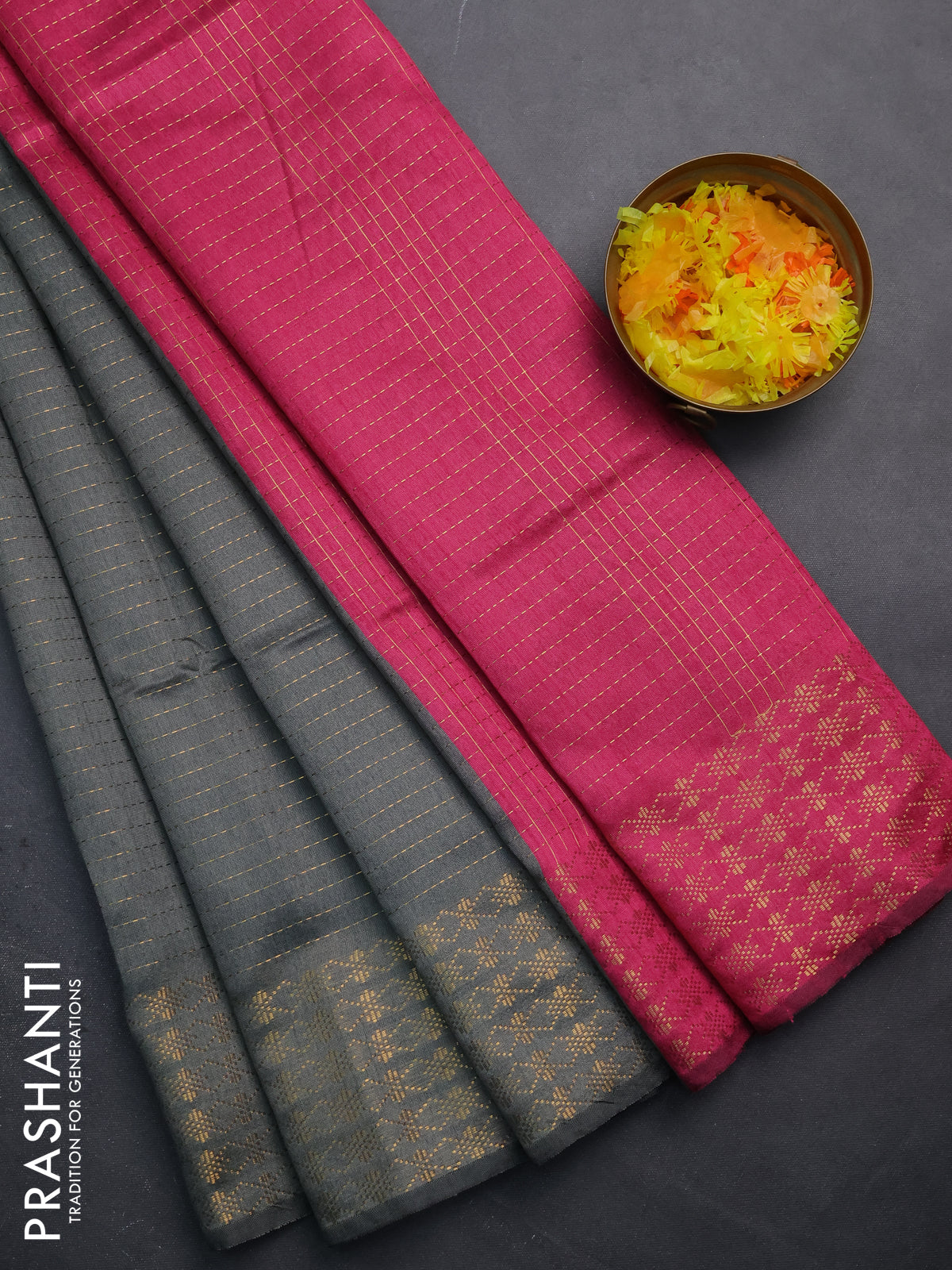 Semi dupion saree grey and pink with allover zari stripe weaves and zari woven border