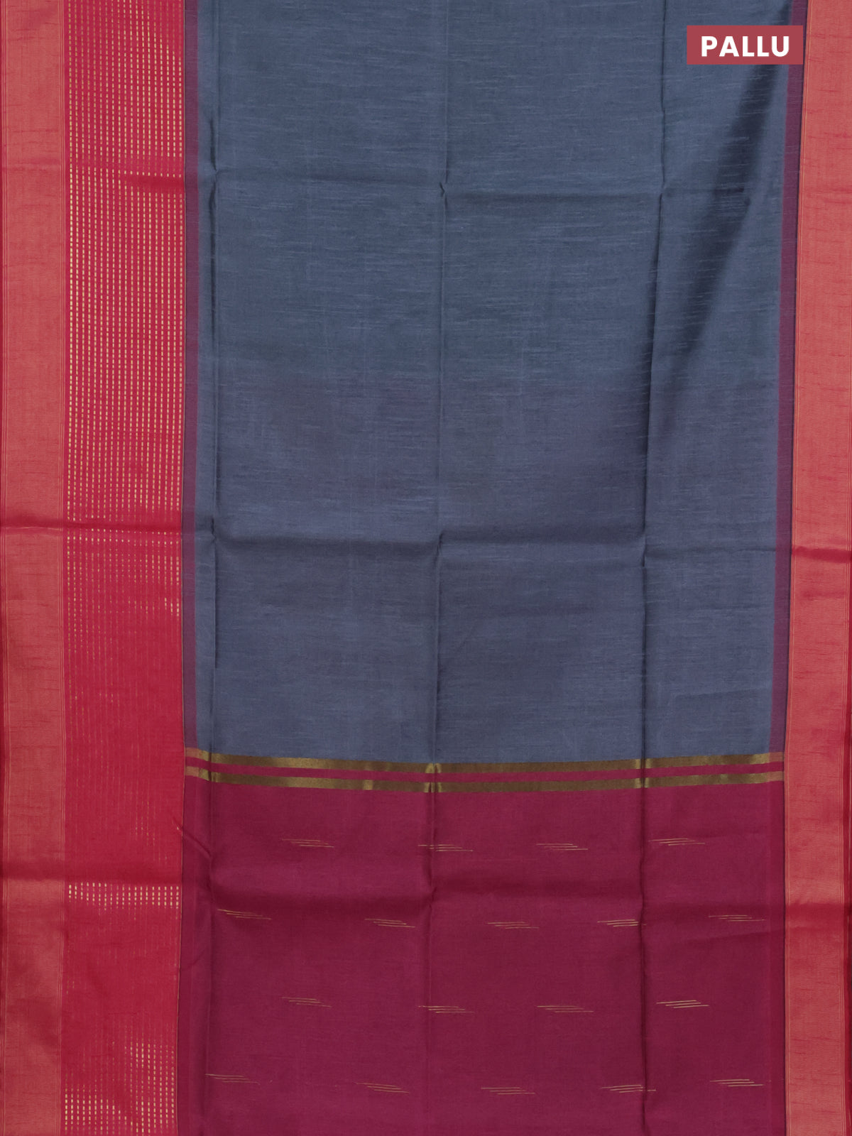 Semi dupion saree grey and pink with plain body and long zari woven border