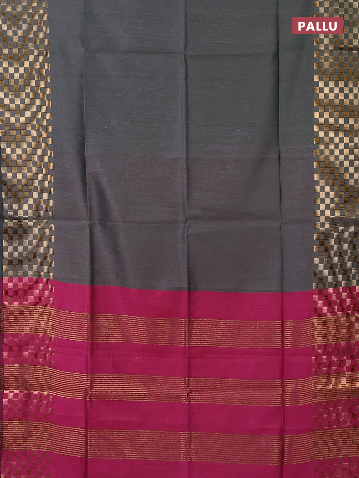 Semi dupion saree grey and pink with plain body and zari woven checked border