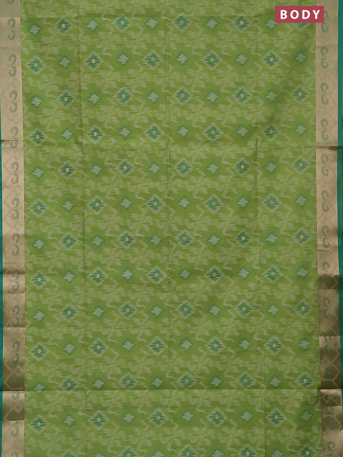 Semi dupion saree light green and green with allover thread woven ikat weaves and zari woven border