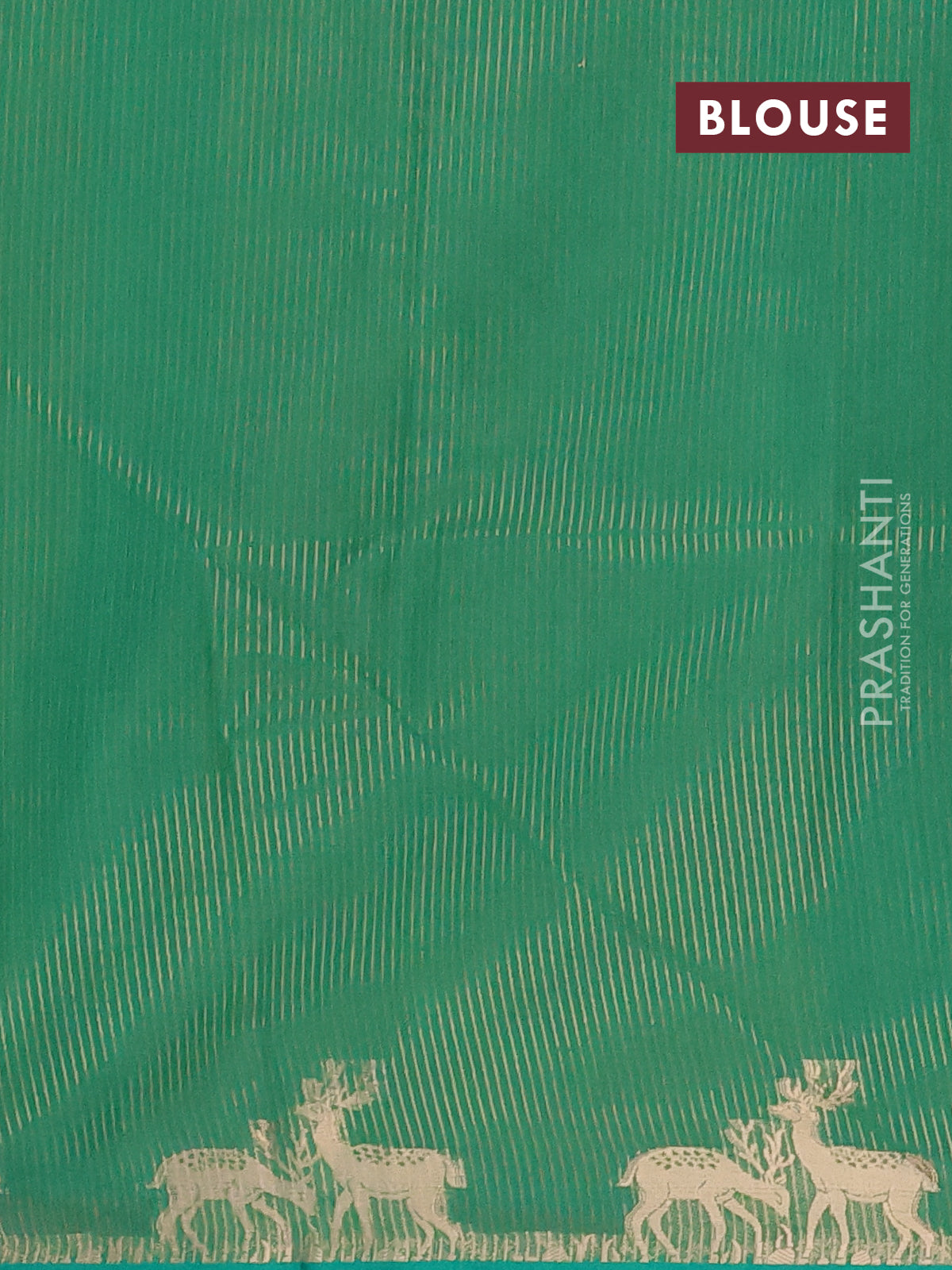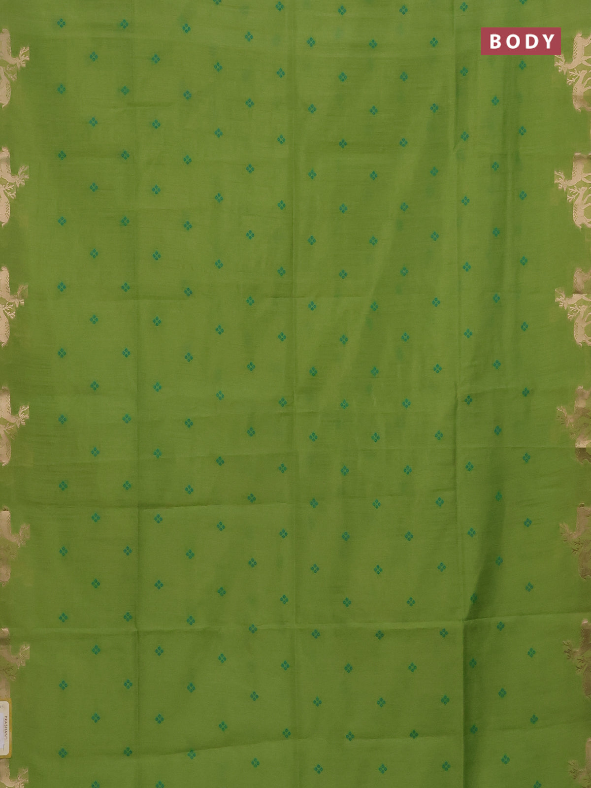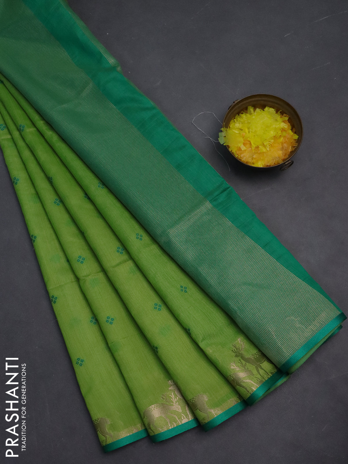 Semi dupion saree light green and green with thread woven buttas and deer zari woven butta border