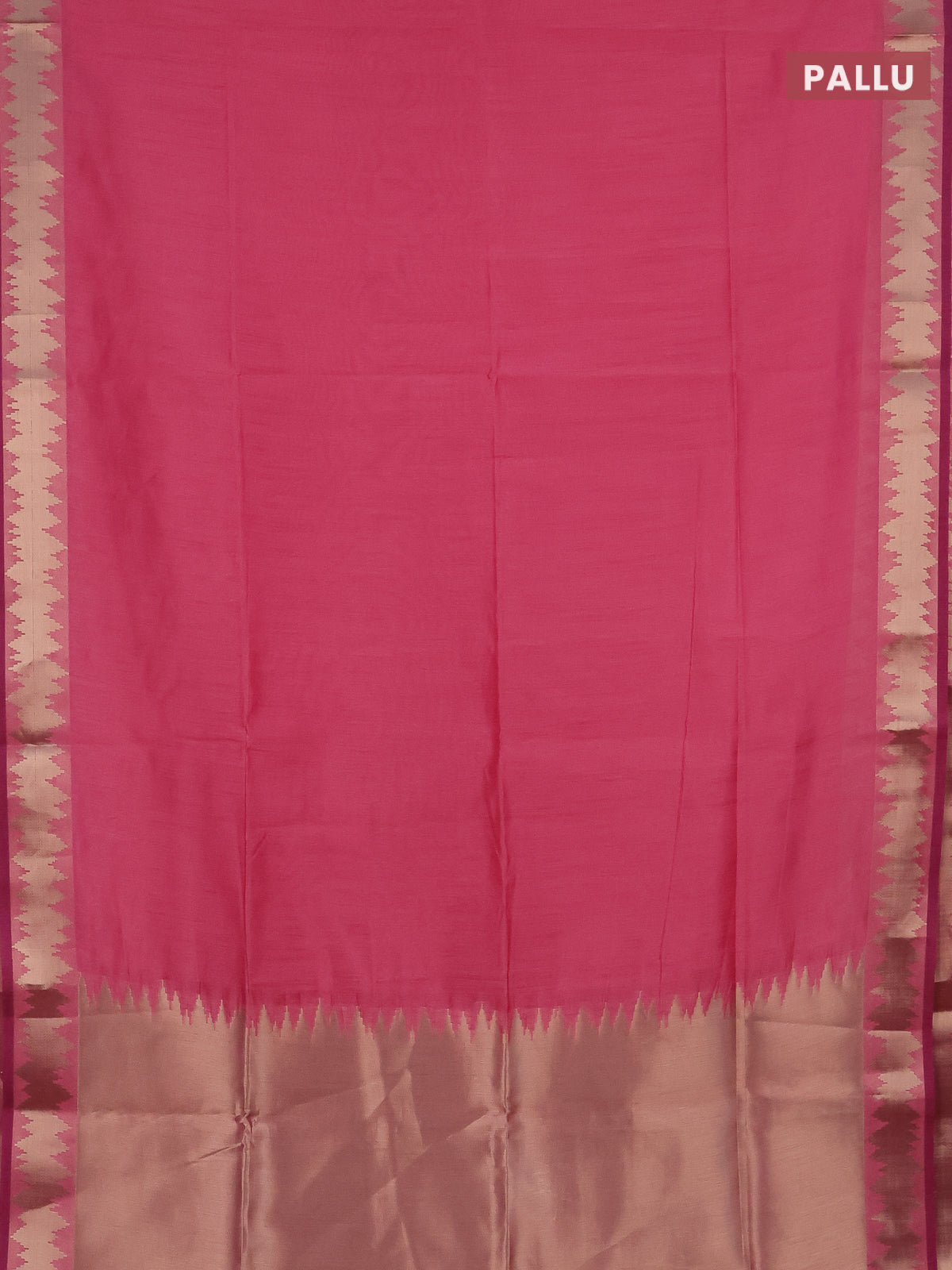 Semi dupion saree light pink and purple with plain body and temple design zari woven border