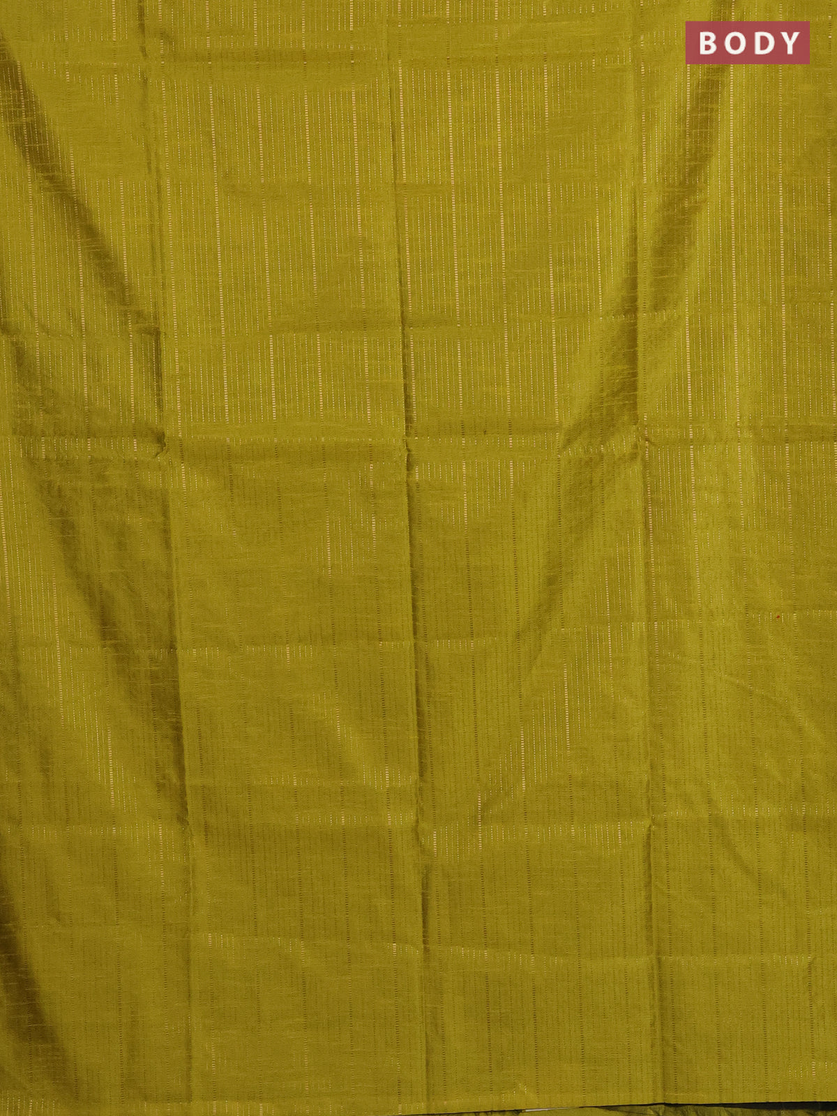 Semi dupion saree lime yellow and black with allover zari weaves in borderless style