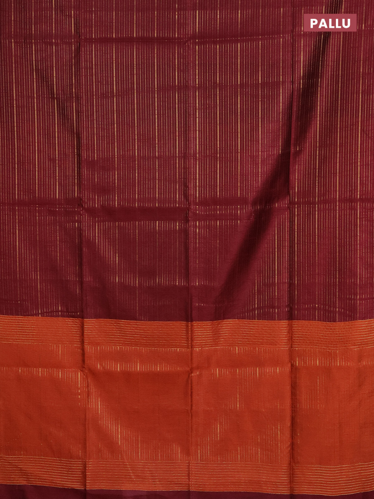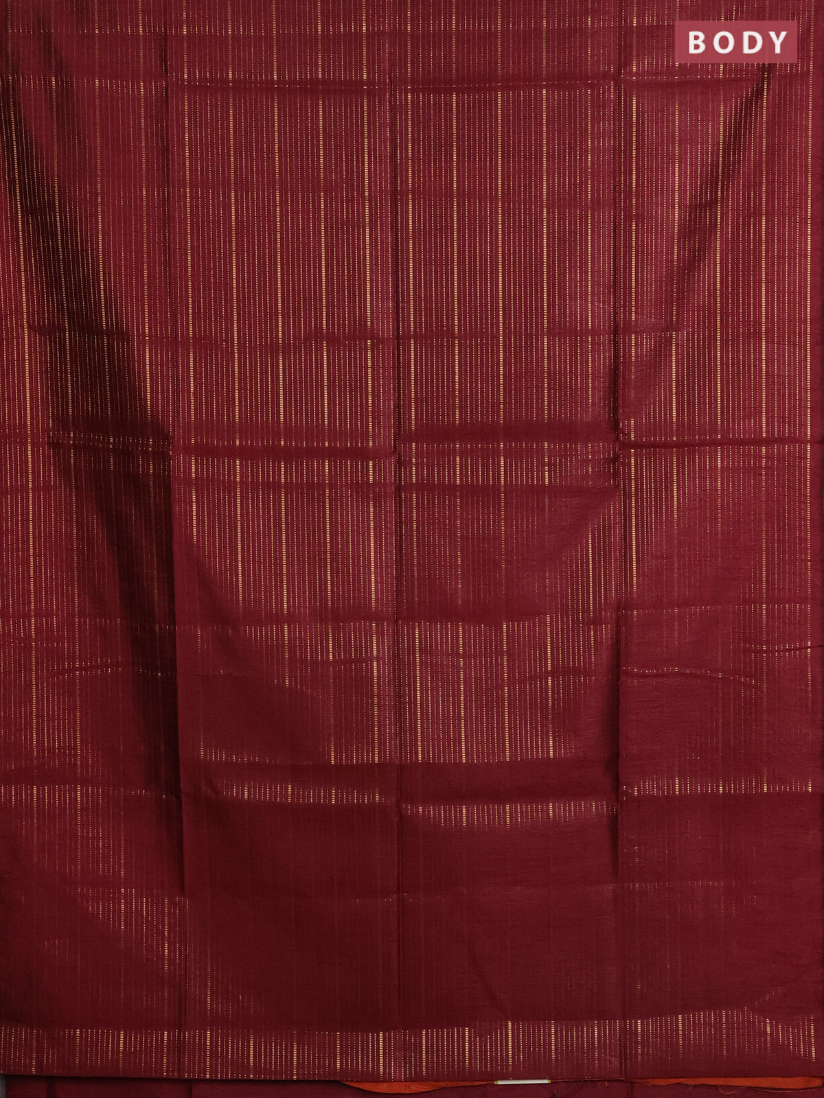 Semi dupion saree maroon and orange with allover zari weaves in borderless style