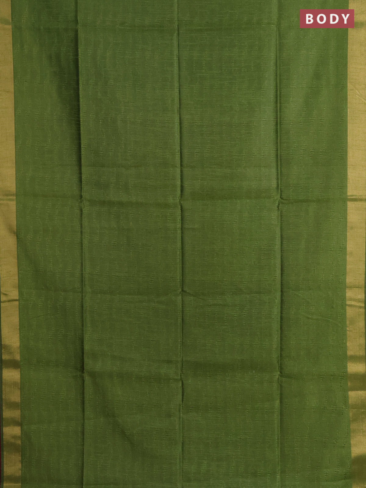 Semi dupion saree mehendi green and maroon with allover self emboss and zari woven border