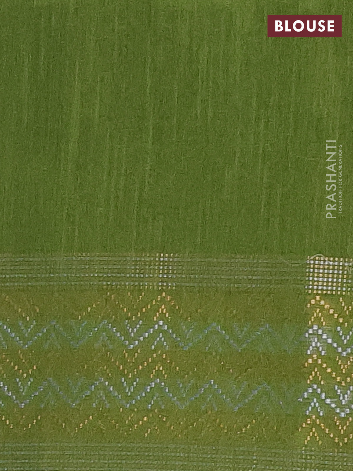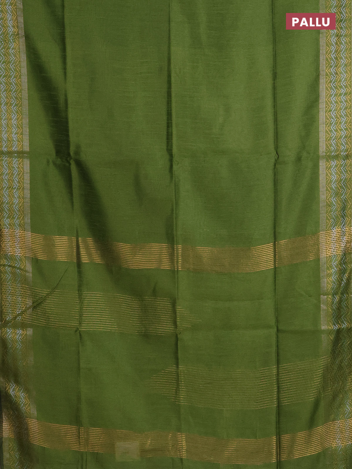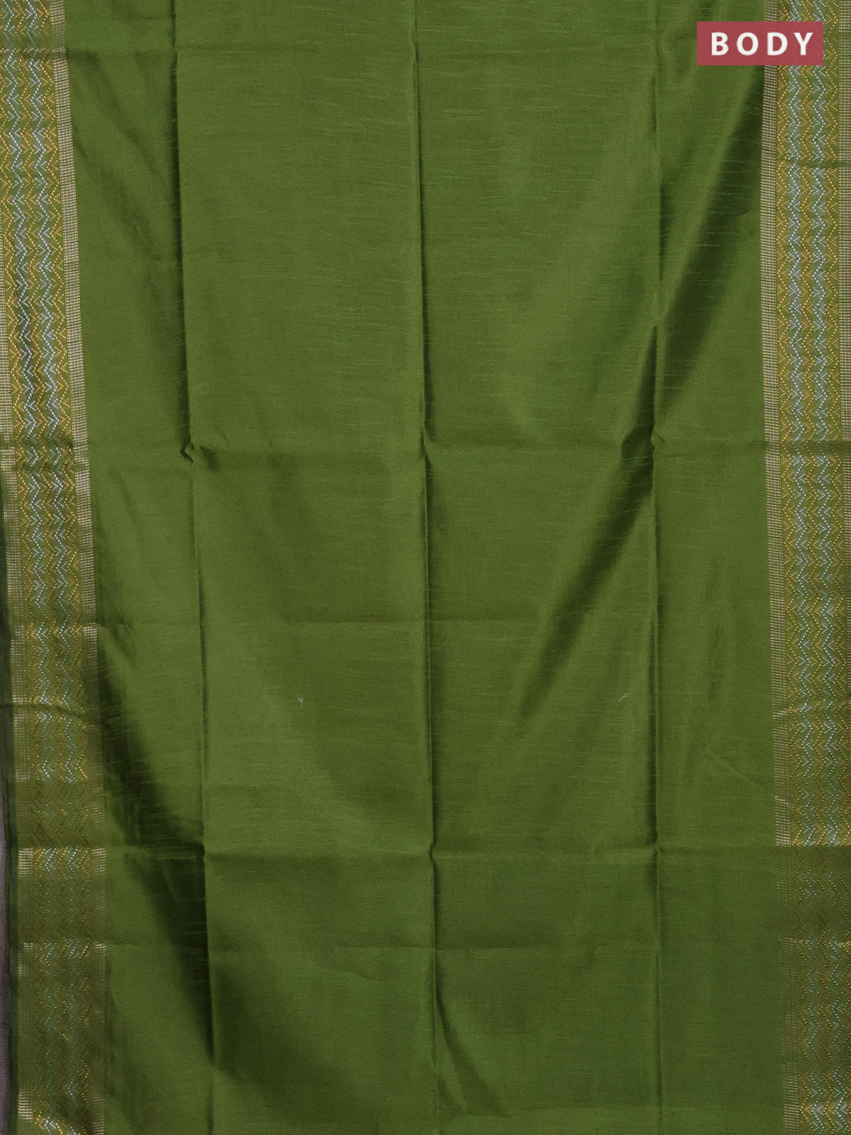 Semi dupion saree mehendi green with plain body and silver & gold zari woven border