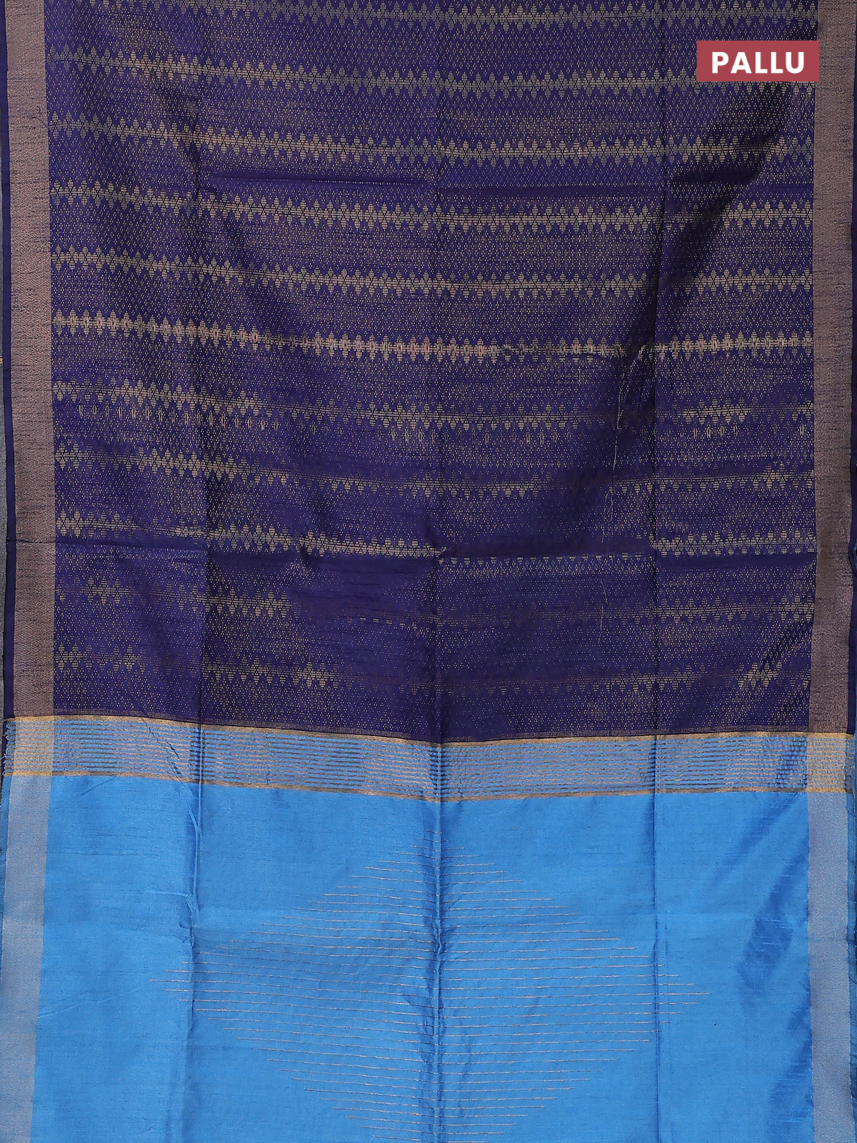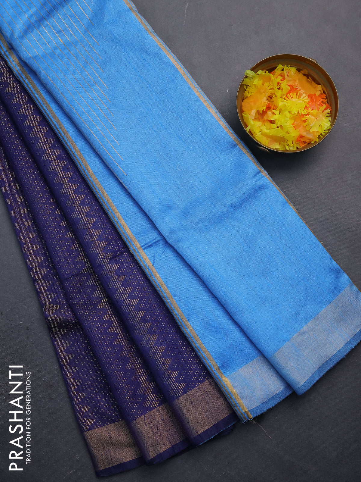 Semi dupion saree navy blue and blue with allover zari weaves and zari woven border