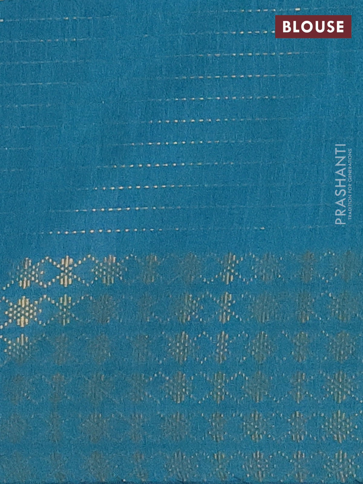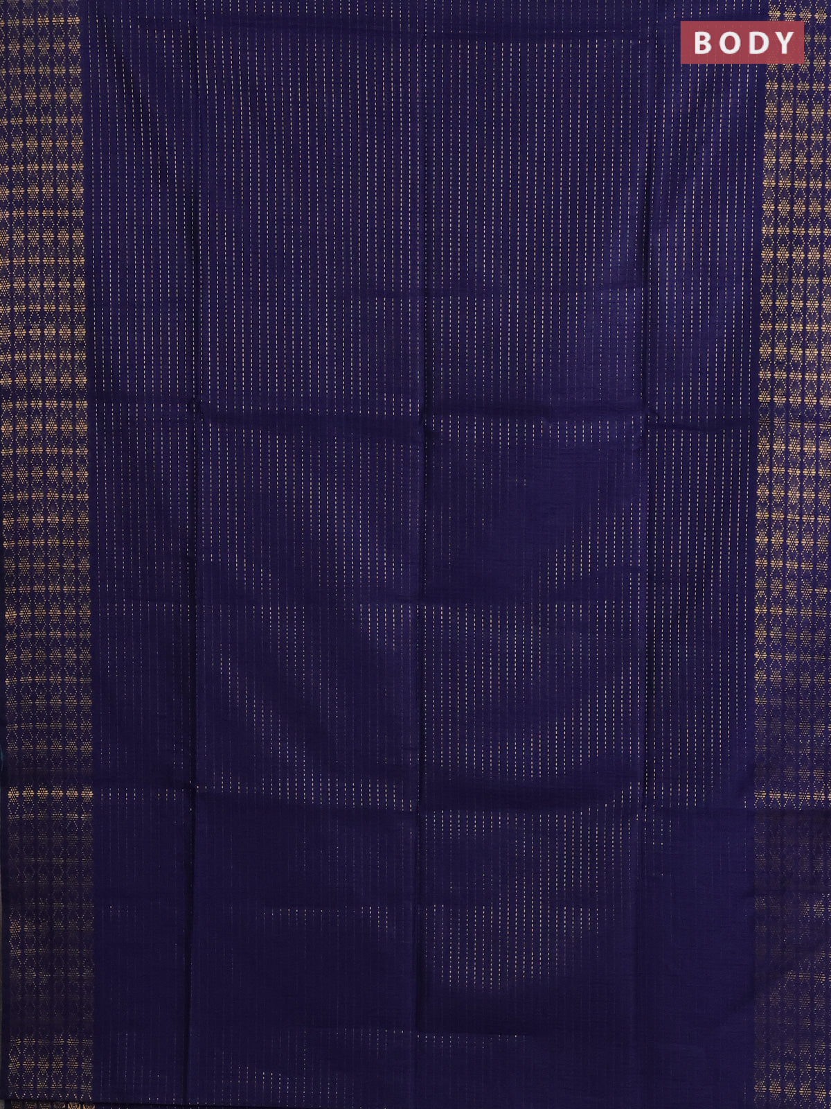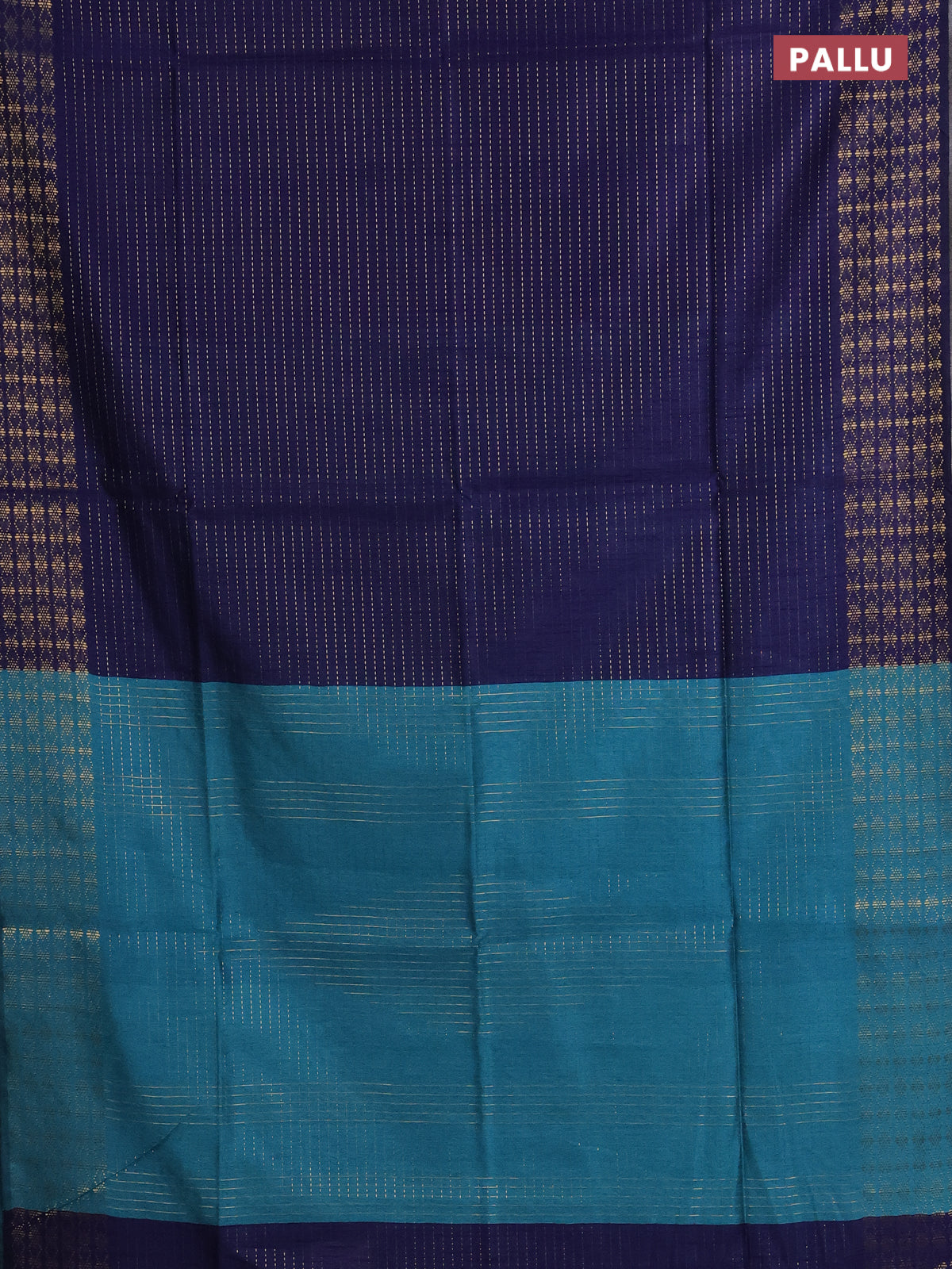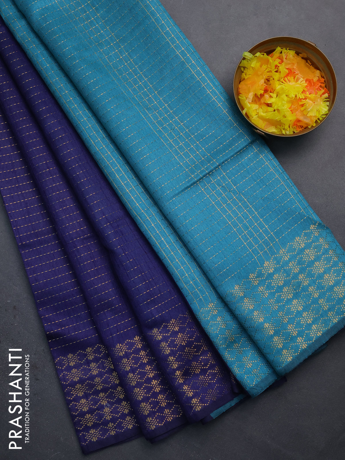 Semi dupion saree navy blue and teal blue with allover zari stripe weaves and zari woven border