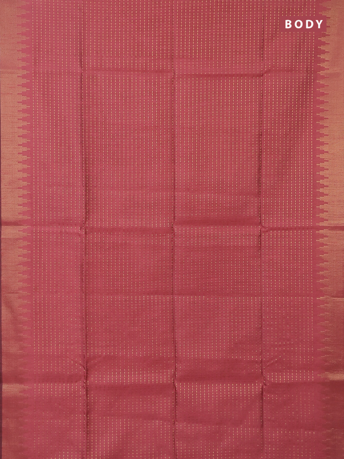 Semi dupion saree peach pink and purple with allover zari woven butta weaves and temple design zari woven border