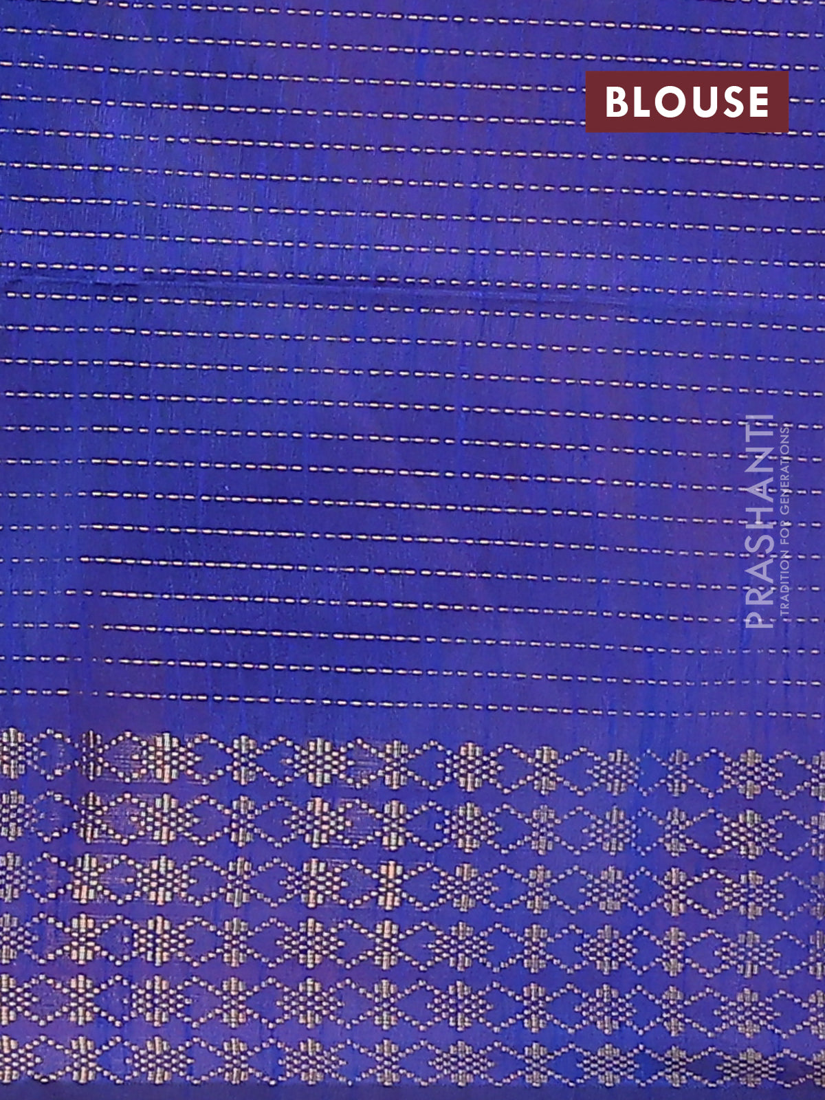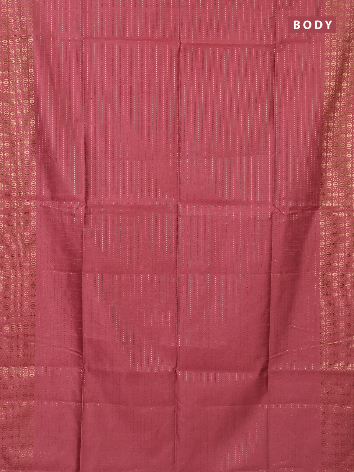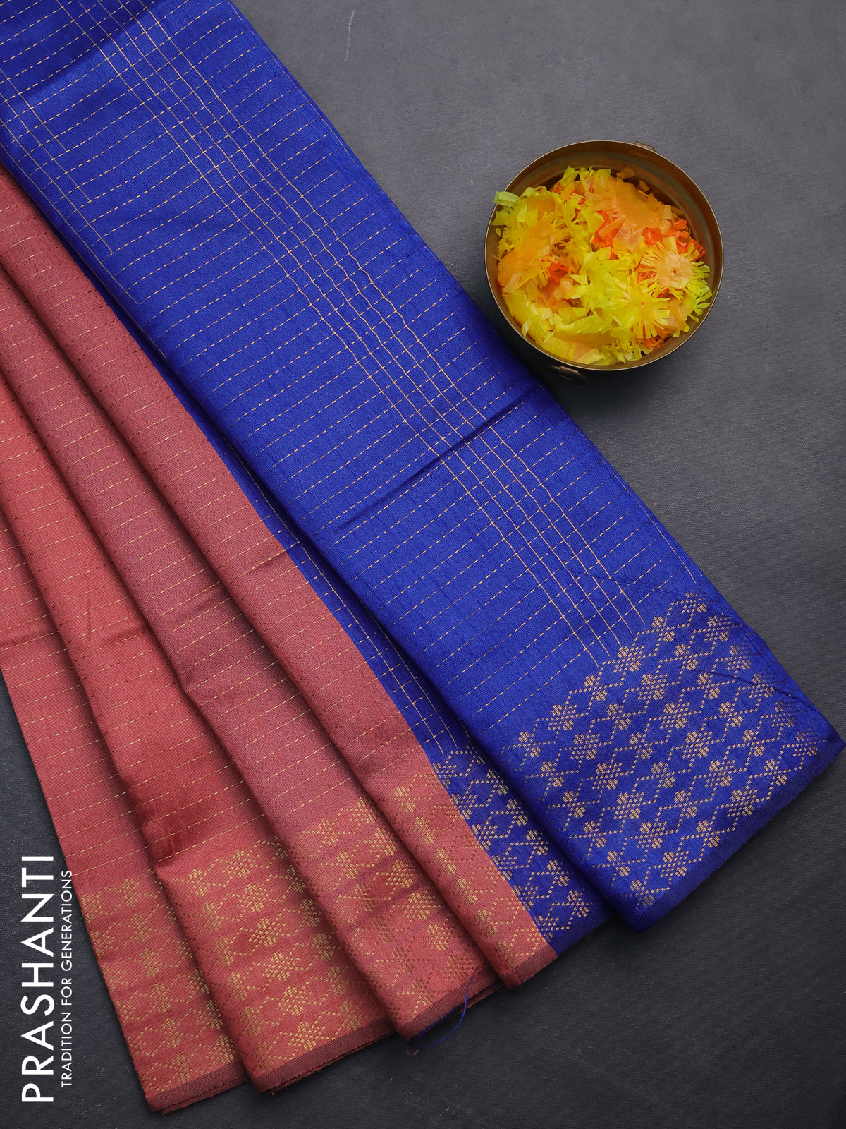 Semi dupion saree peach shade and blue with allover zari stripe weaves and zari woven border