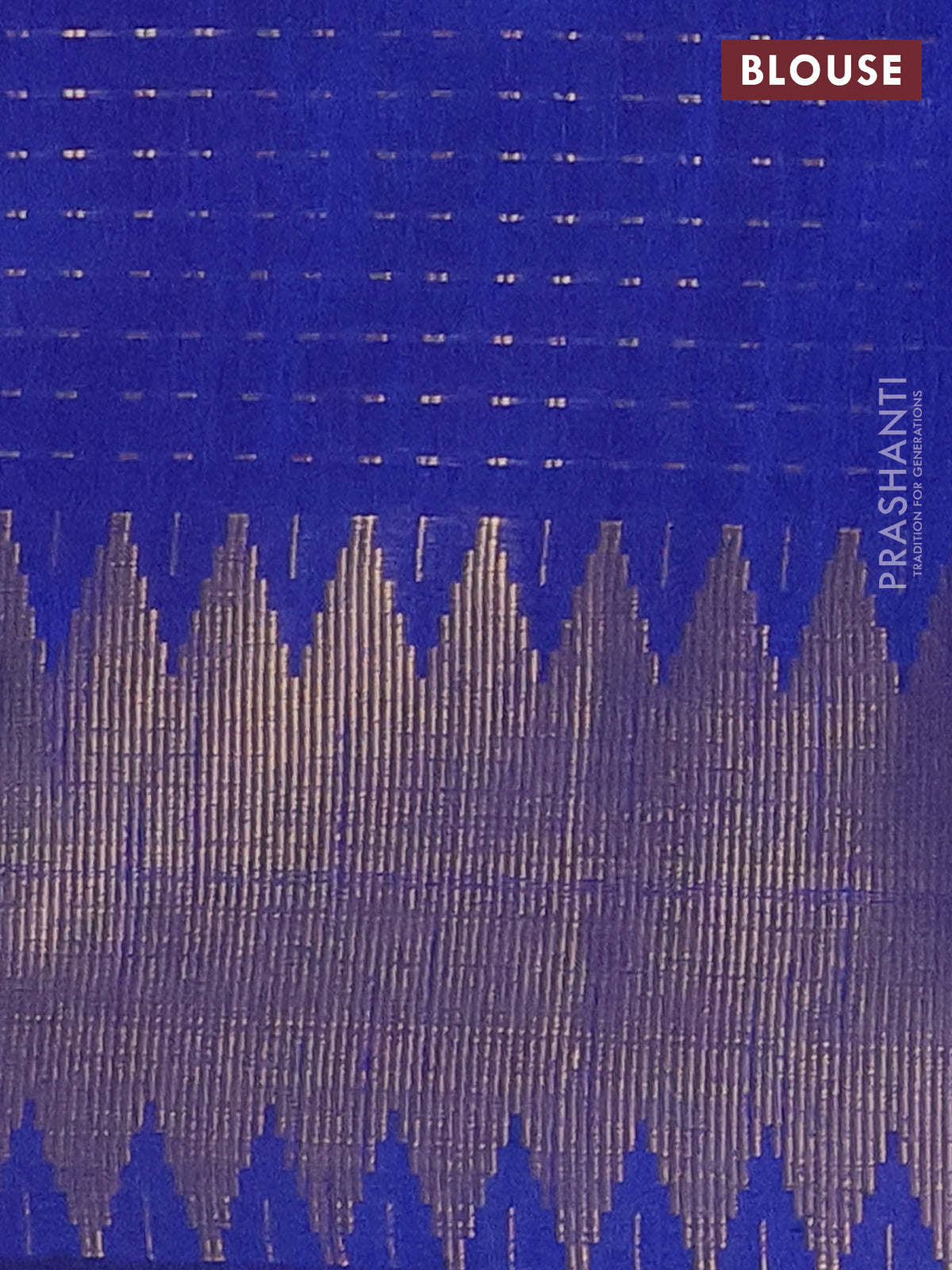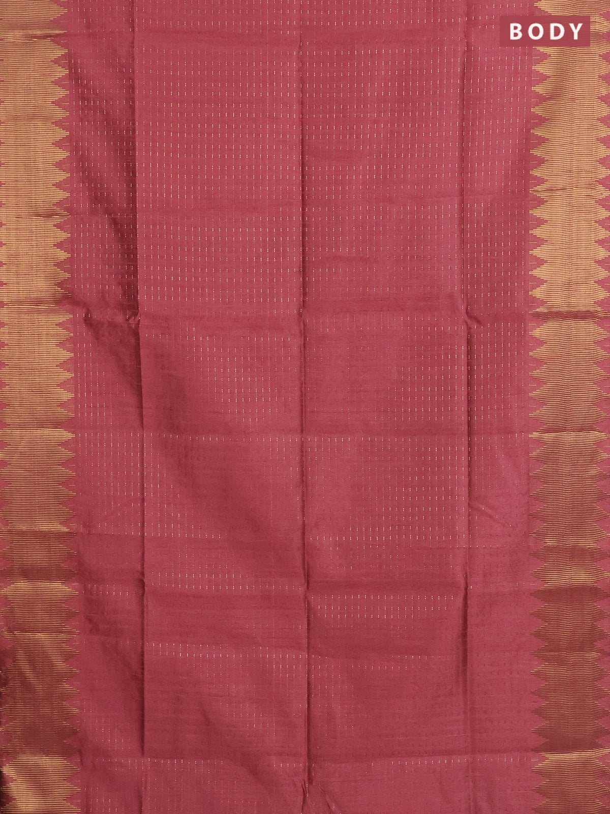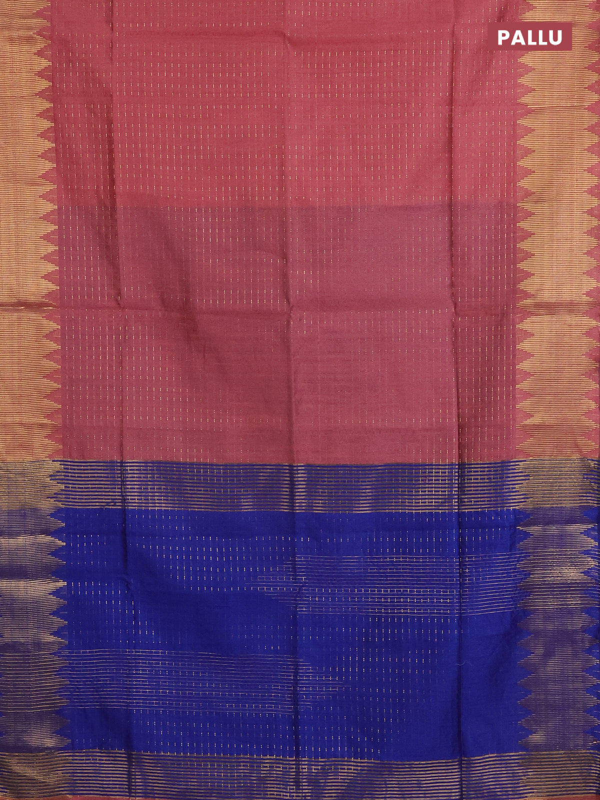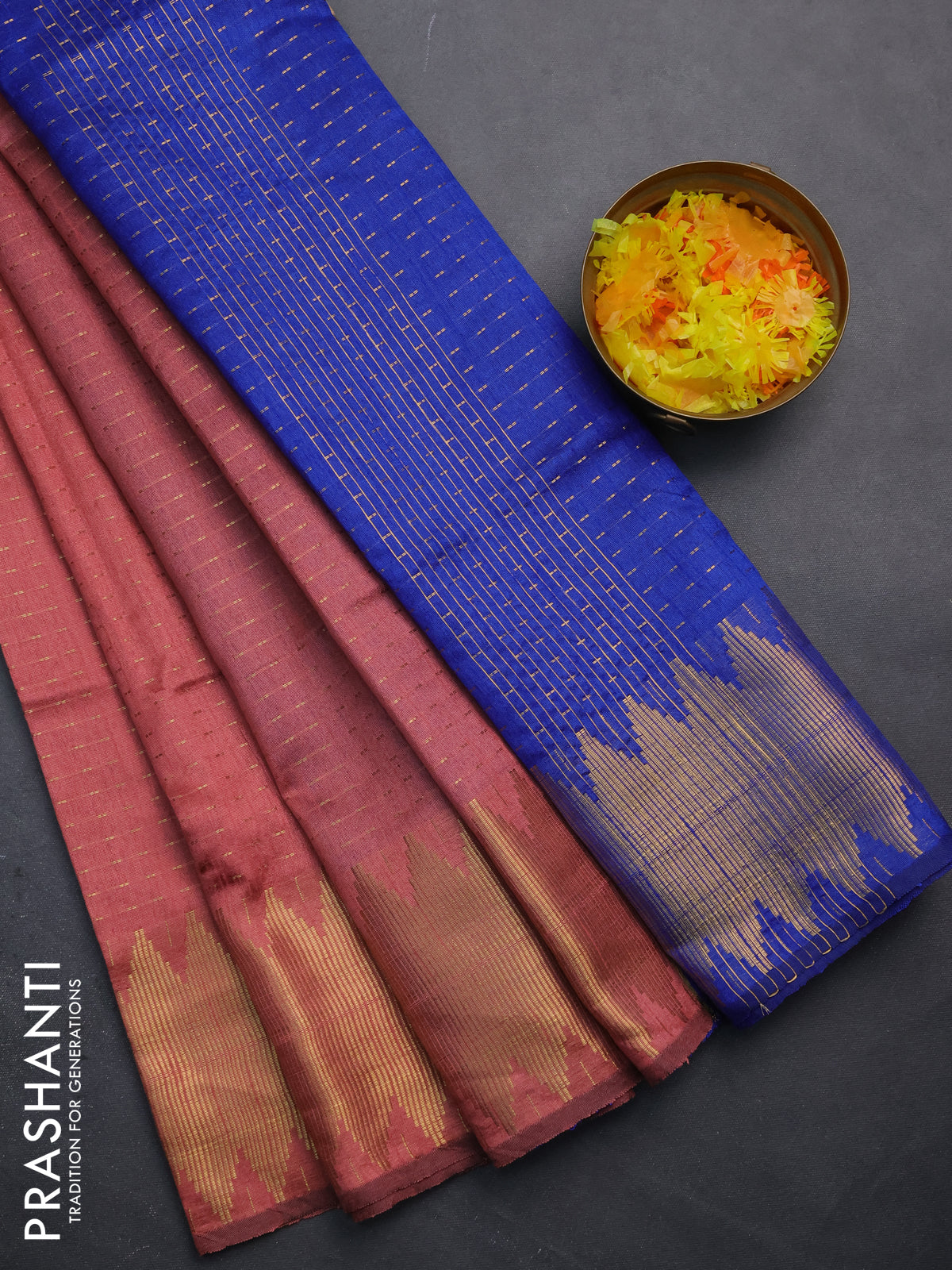 Semi dupion saree peach shade and blue with allover zari woven butta weaves and temple zari woven border