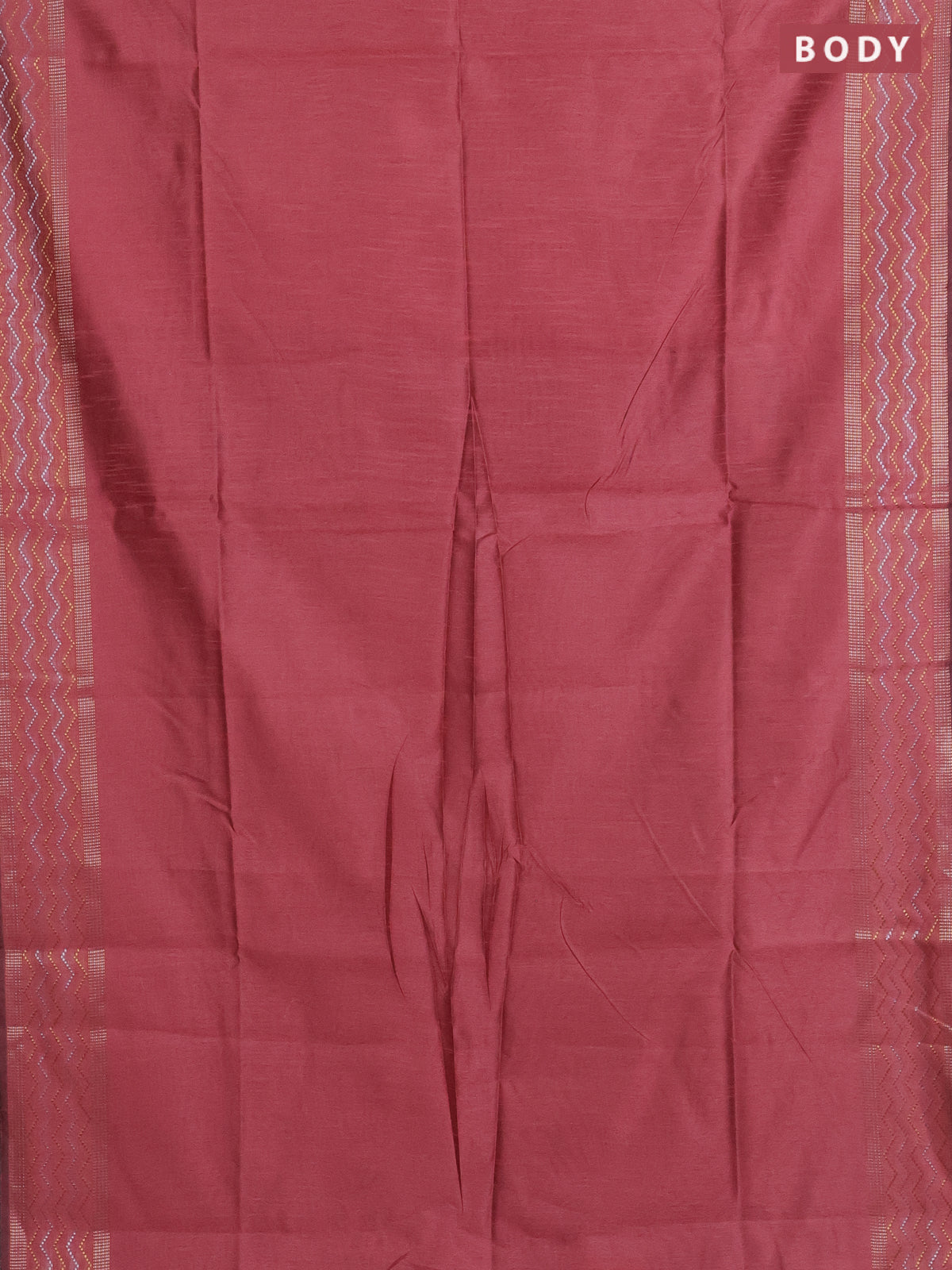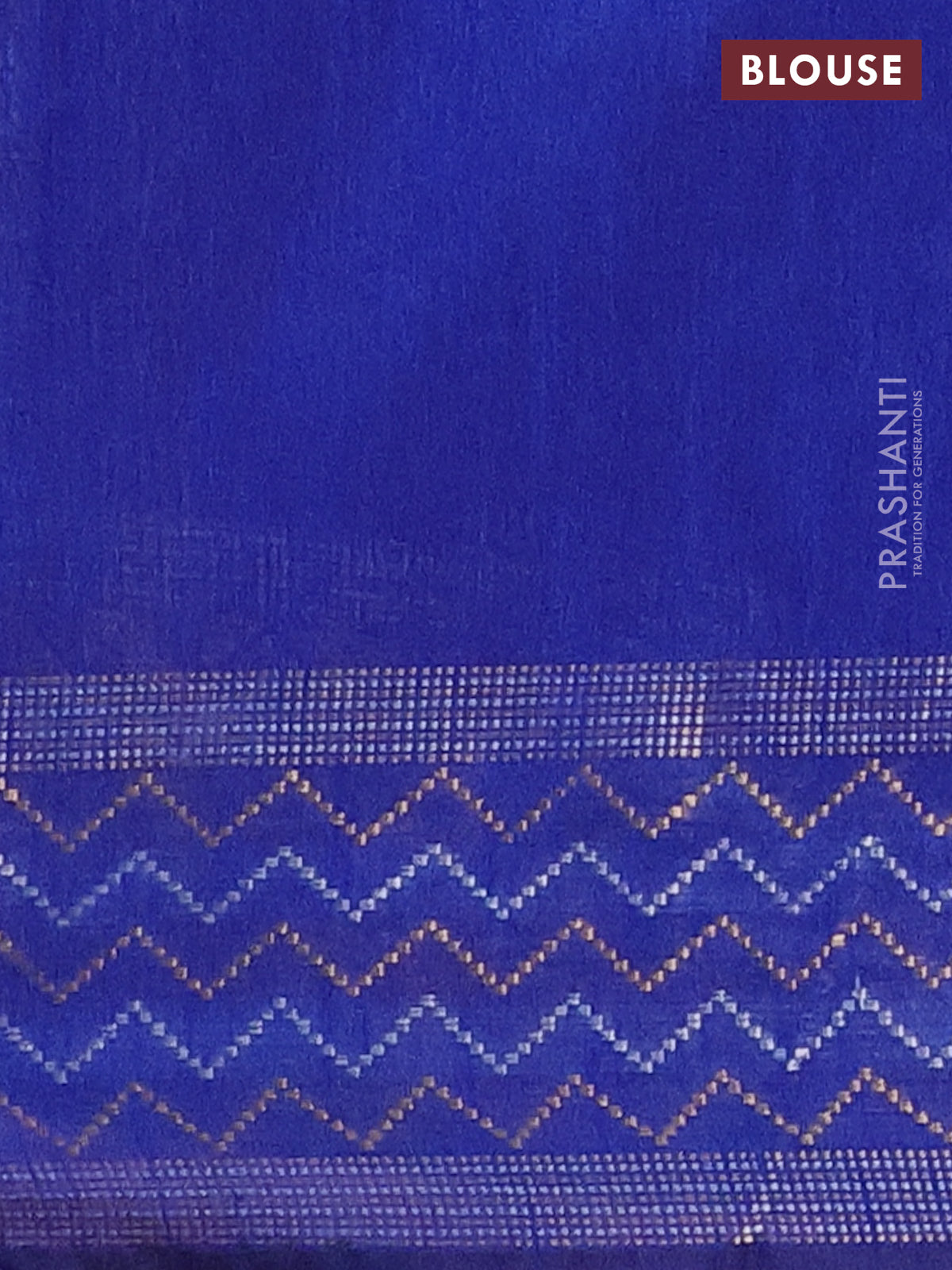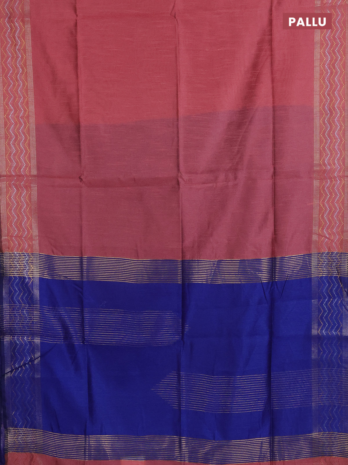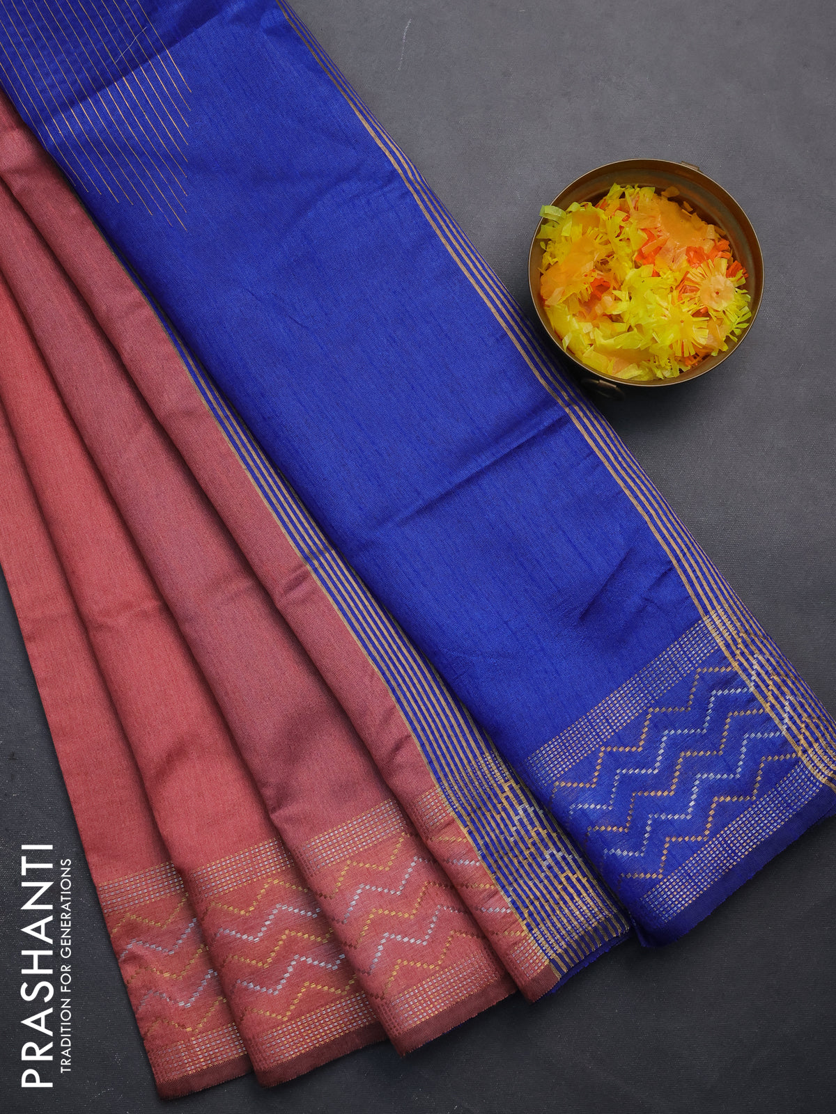Semi dupion saree peach shade and blue with plain body and silver & gold zari woven border