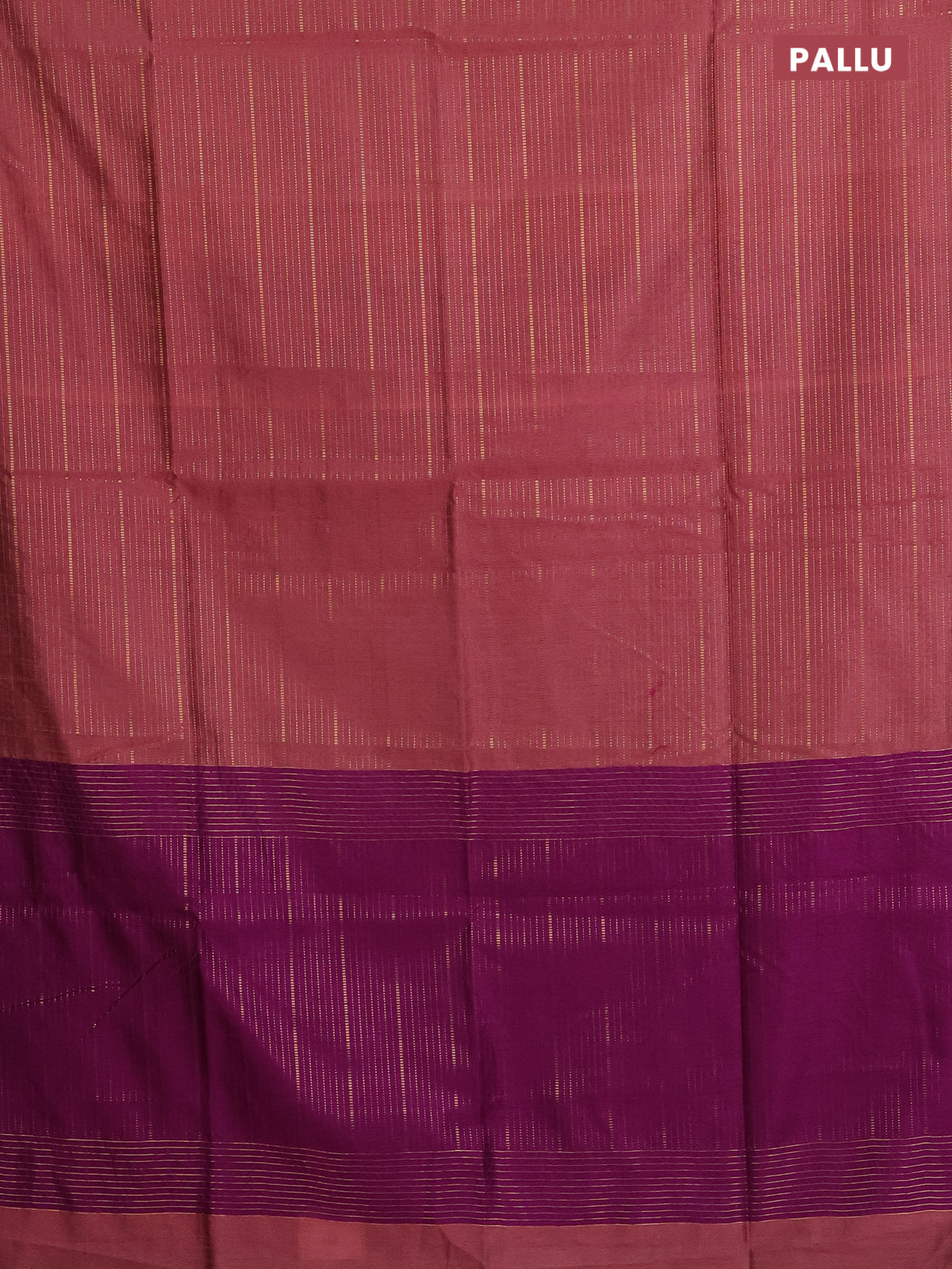 Semi dupion saree peach shade and purple with allover zari weaves in borderless style