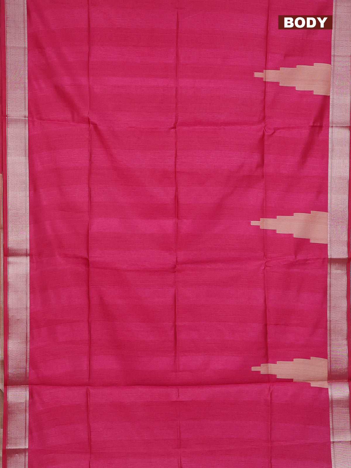 Semi dupion saree pink and dual shade of beige with plain body and kalamkari printed pallu
