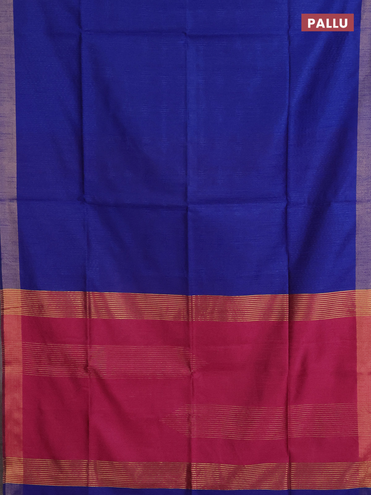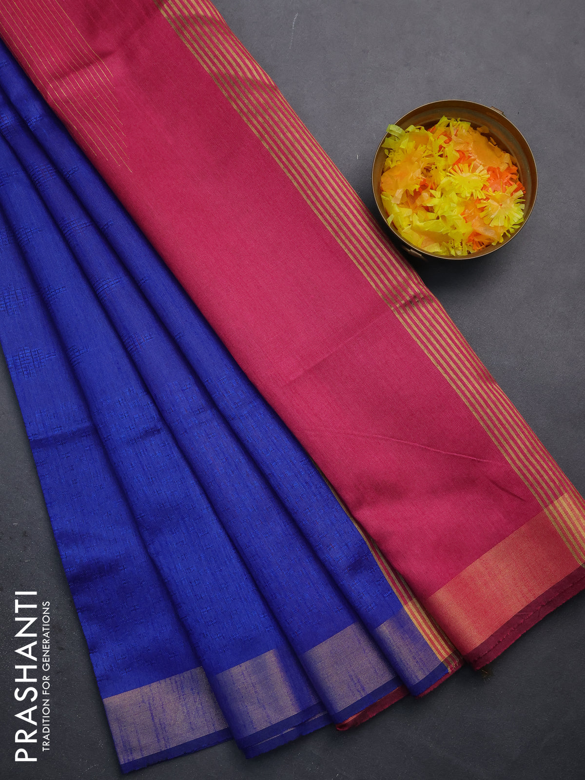 Semi dupion saree royal blue and pink with allover self emboss and zari woven border