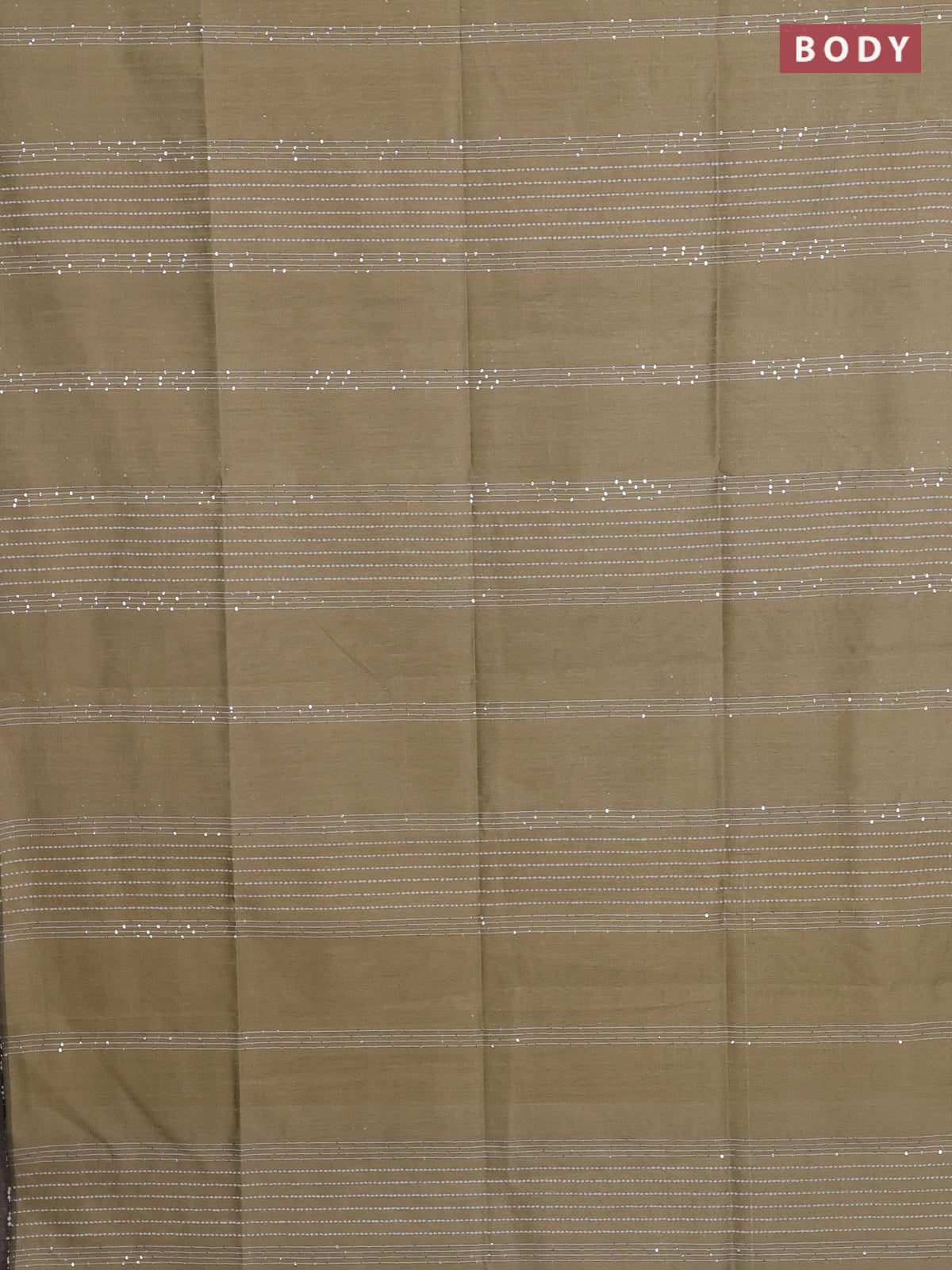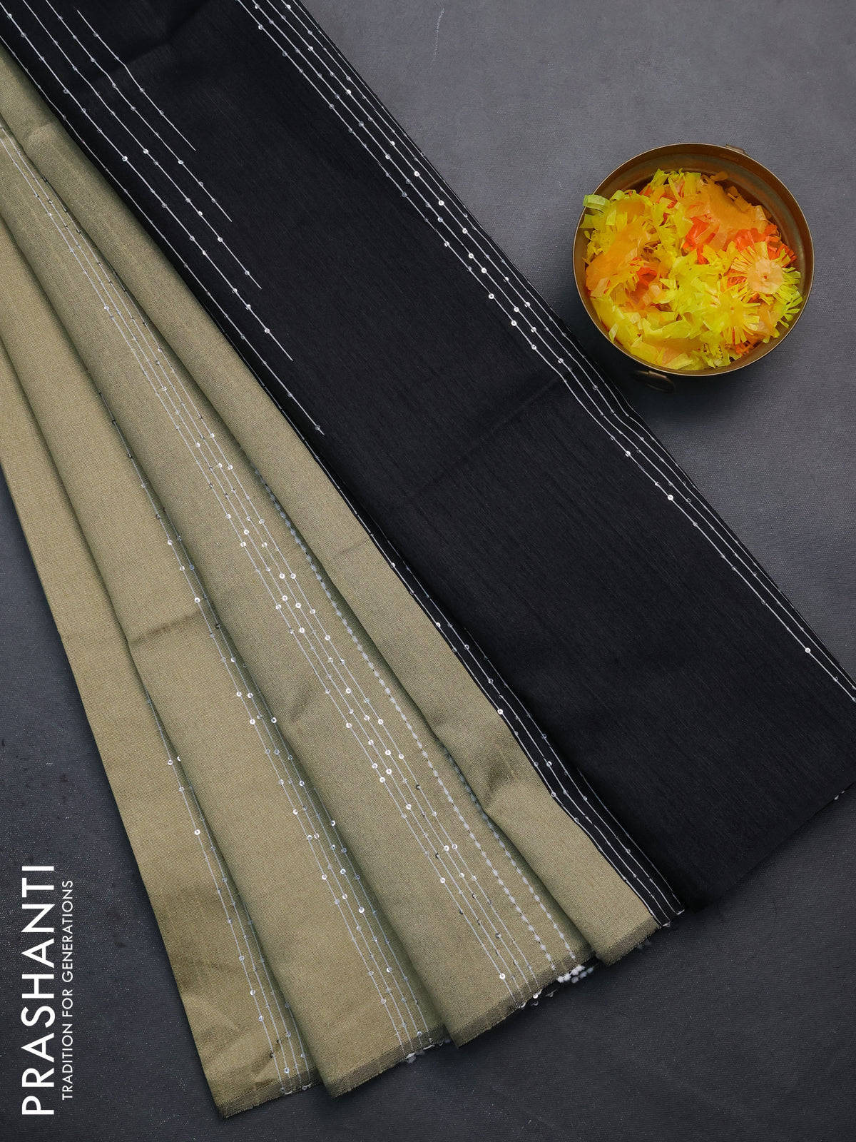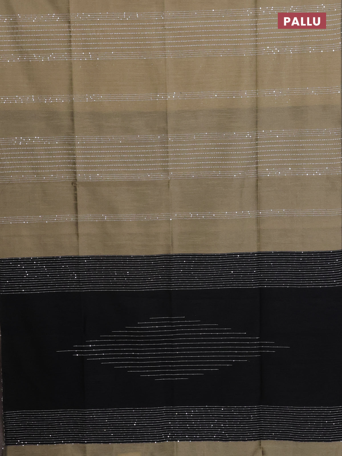 Semi dupion saree sandal and black with allover thread & sequin weaves and sequin work pallu