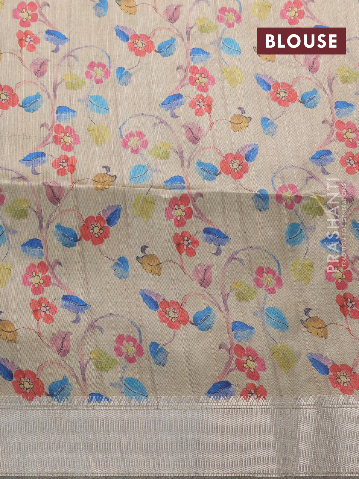 Semi dupion saree sap green and beige with plain body and printed pallu
