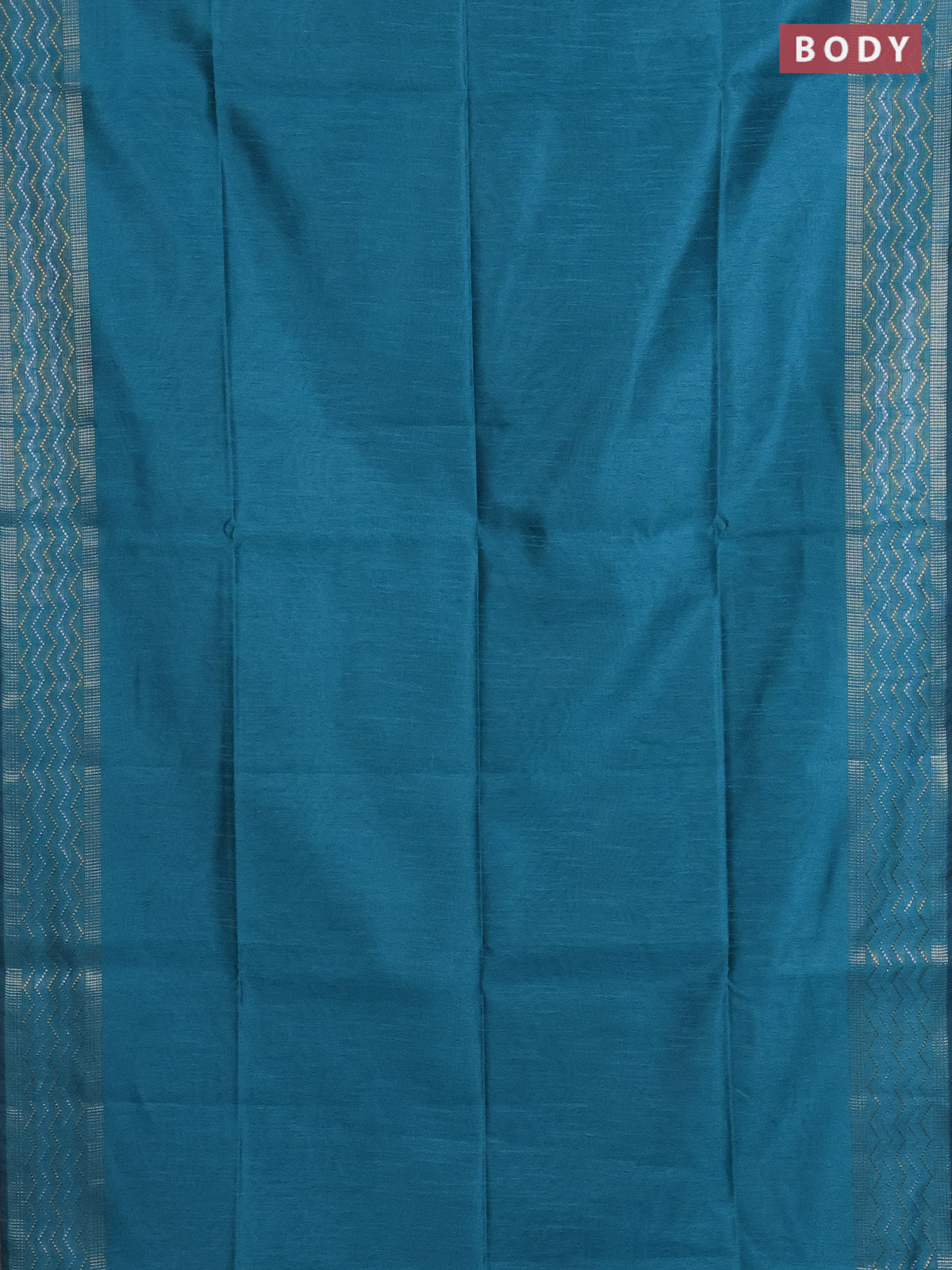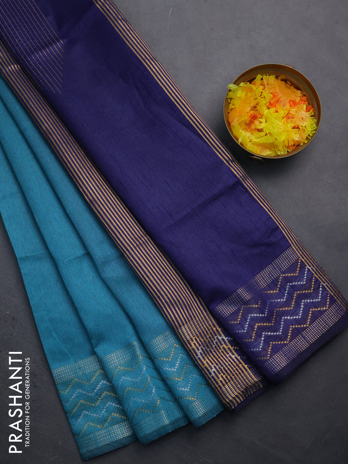 Semi dupion saree teal blue and blue with plain body and silver & gold zari woven border